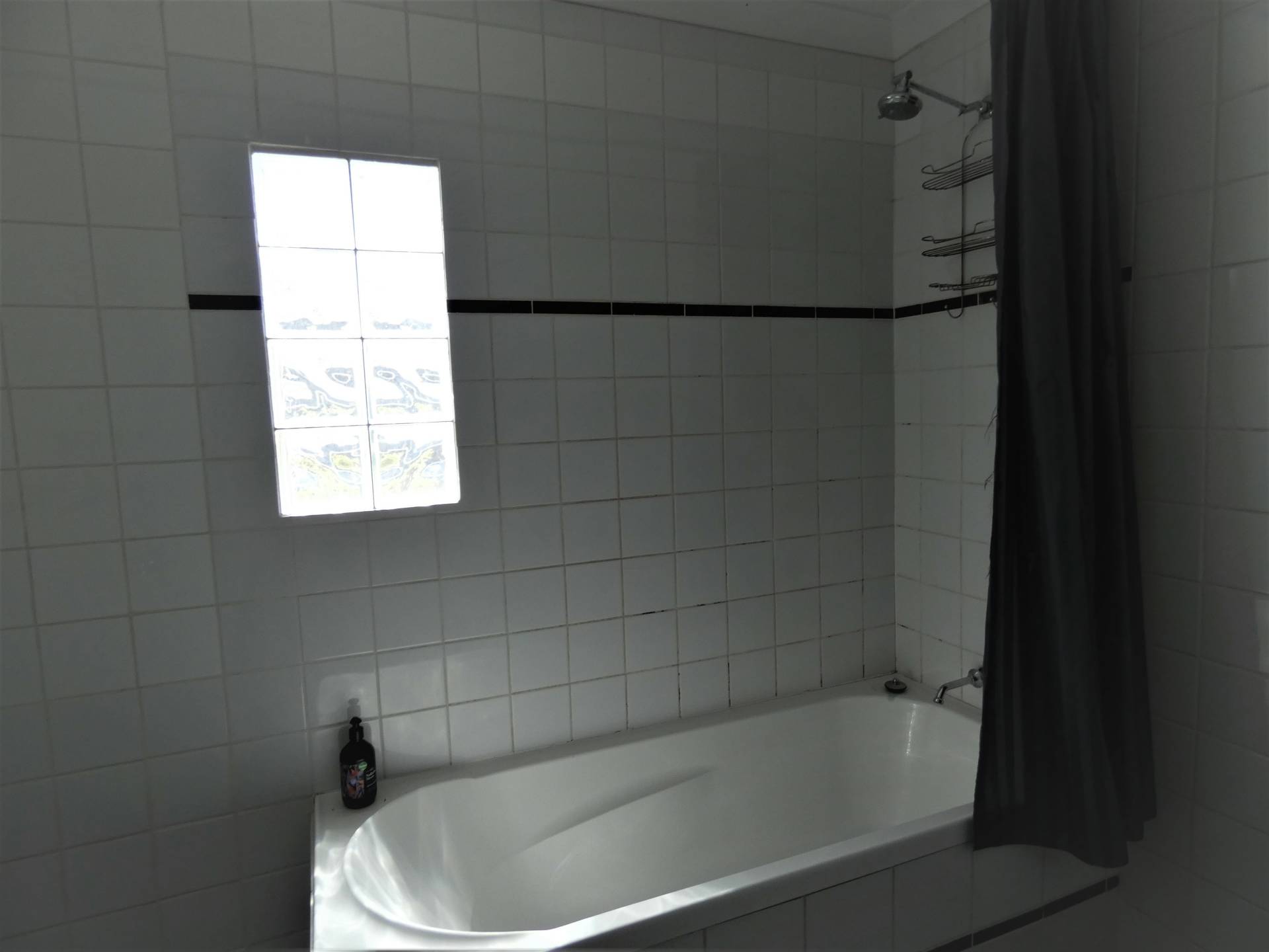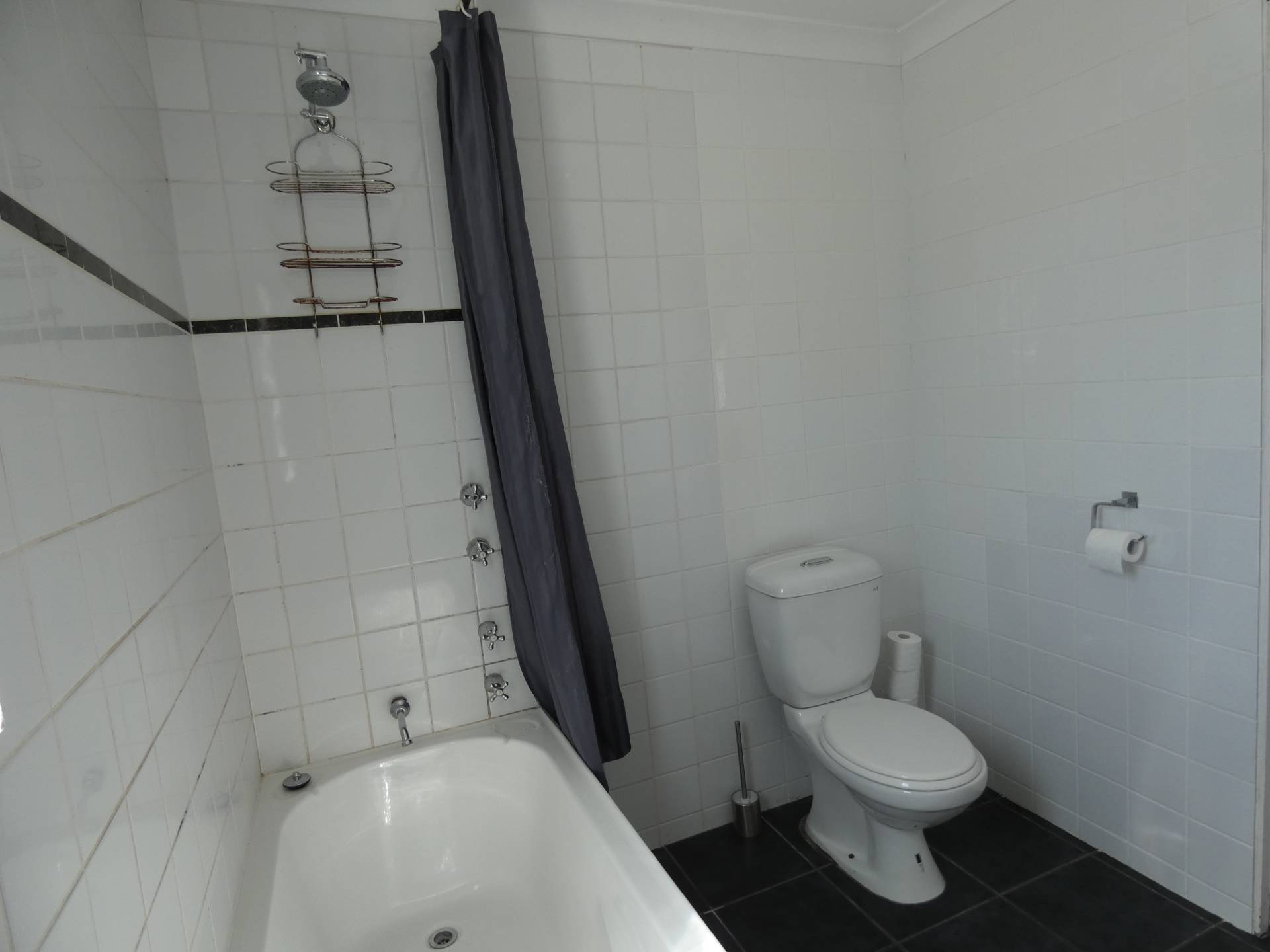 The bathroom has been renovated and has a shower over bath, toilet and vanity.
