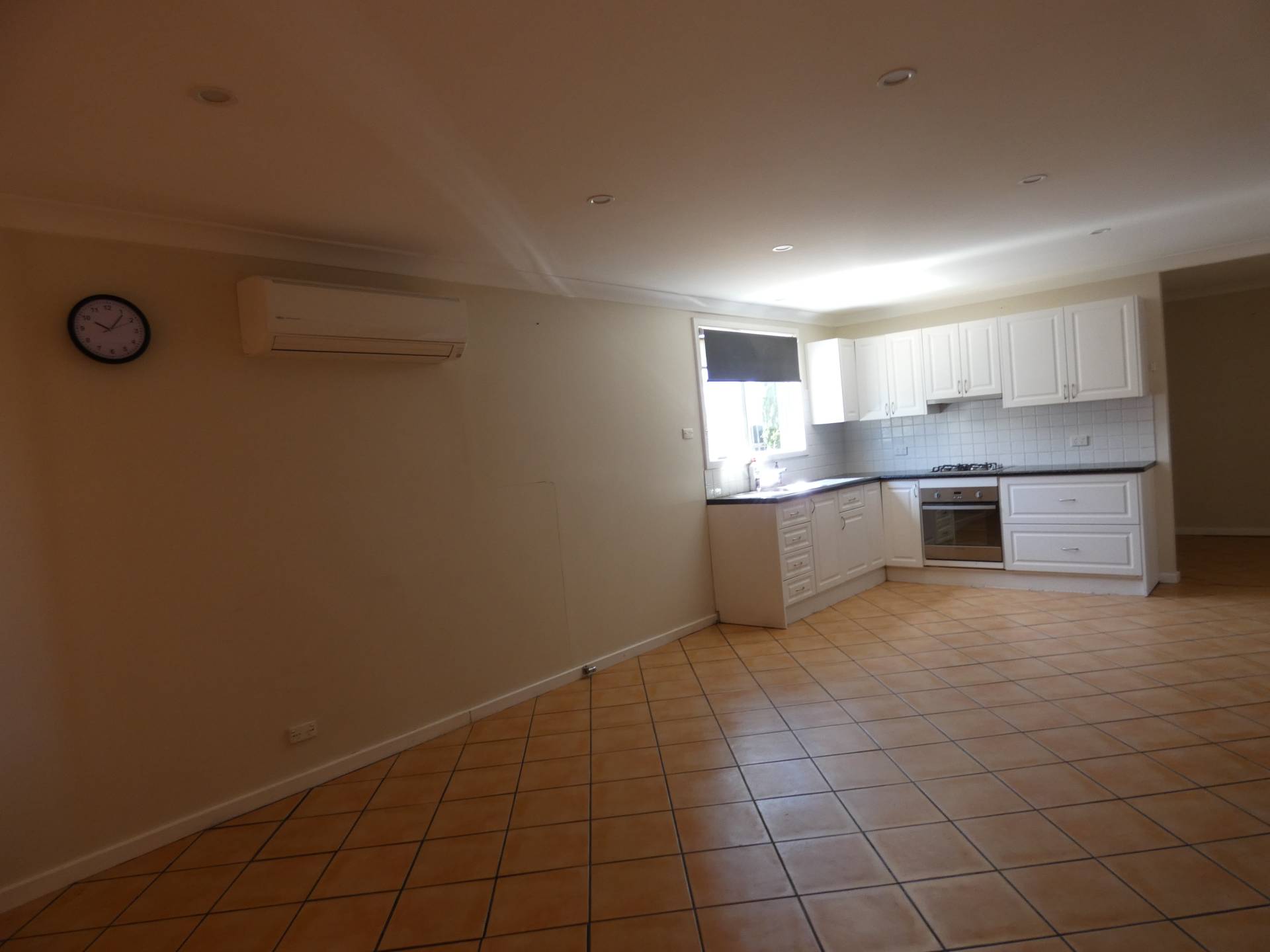 The home has an open plan lounge/ dining / kitchen with reverse cycle split system air con & a gas bayonet.