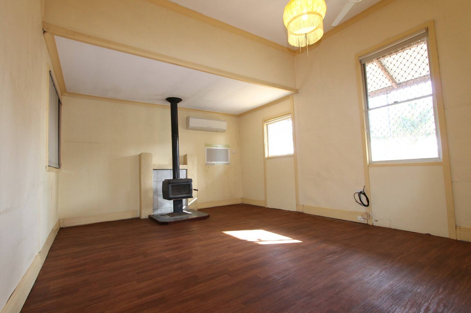 Inside you will find a central hallway with the lounge room to the right and main bedroom to the left. These rooms have high ceilings and the original tin walls. The lounge room has a new wood fire and a split system air conditioner. The main bedroom has a ceiling fan.