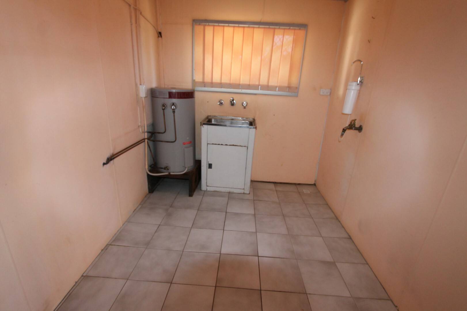To the rear of the home you will find a long enclosed space with the laundry at one end, there is an electric Hot water system in the laundry.
