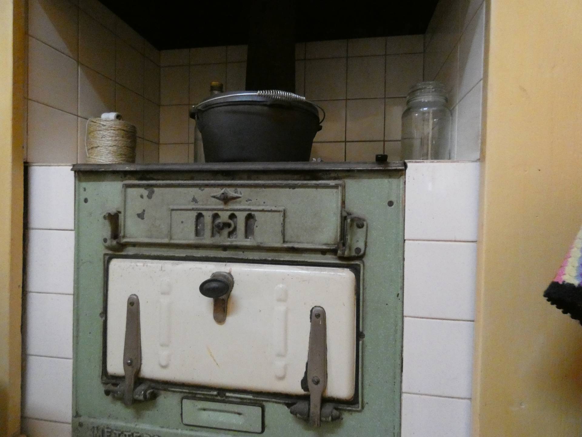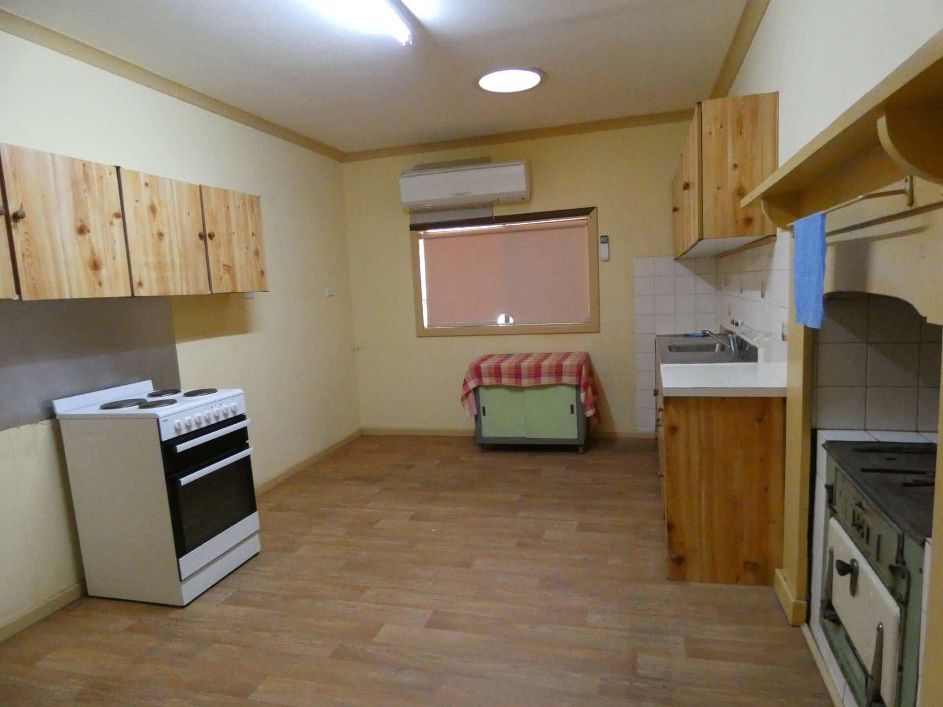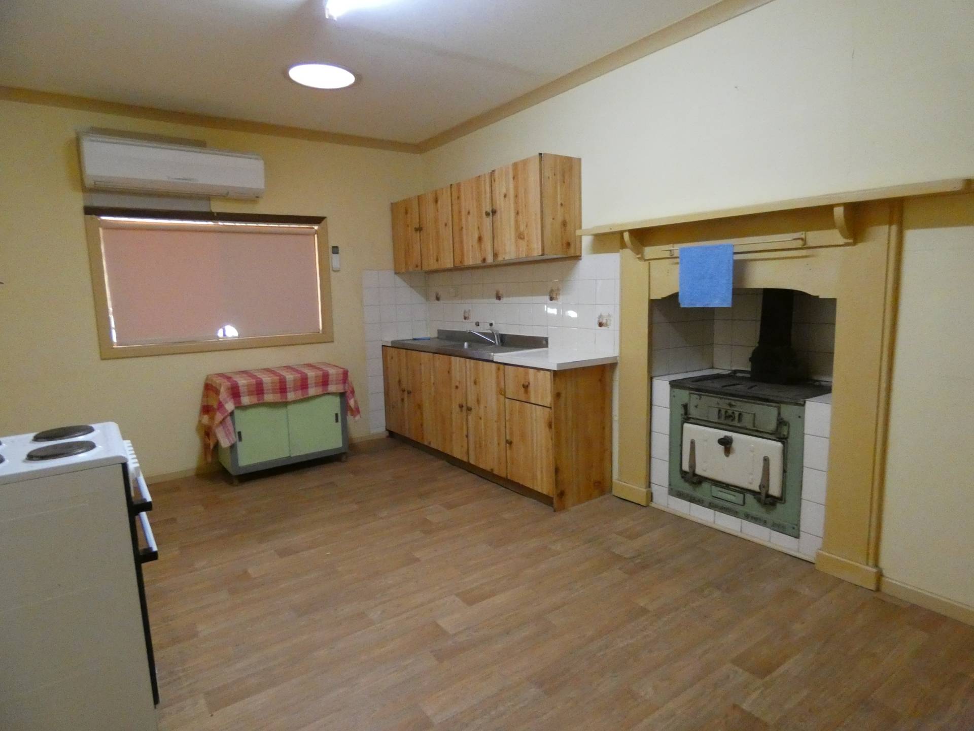 The kitchen has pine cupboards, an original Metters stove and a gas stove for cooking. The kitchen also has a split system air conditioner.