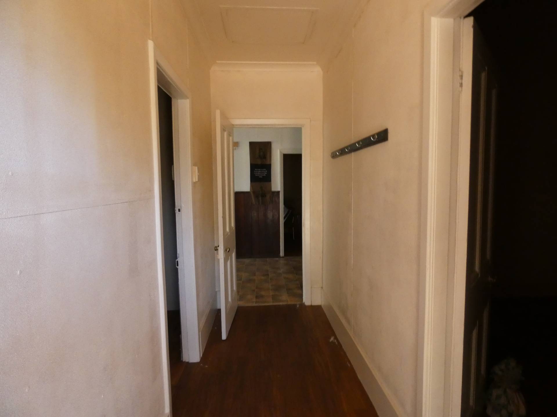 At the end of the hall way is another wide hallway, this space has jarrah timber boards below the dado rail and high ceilings.