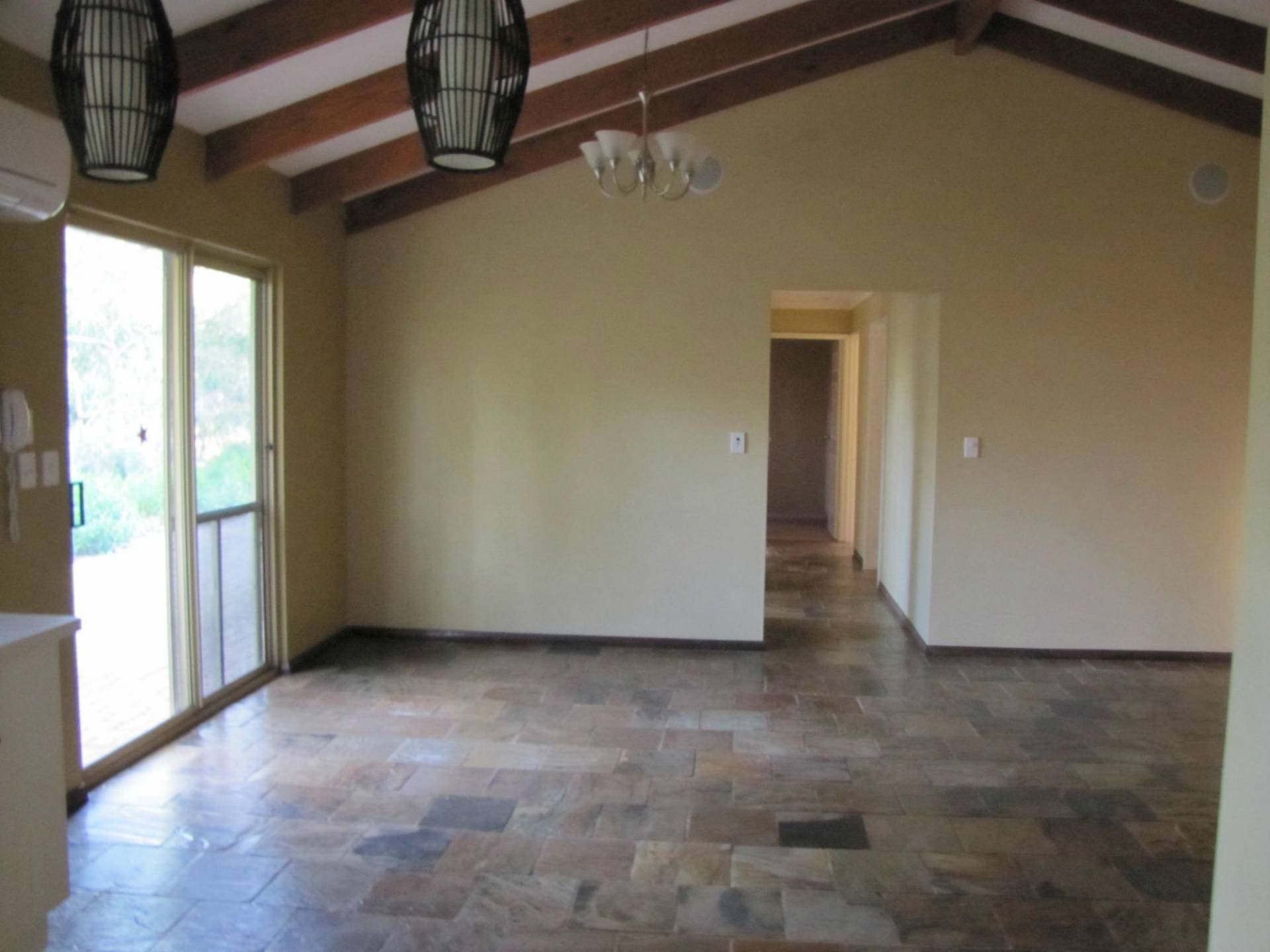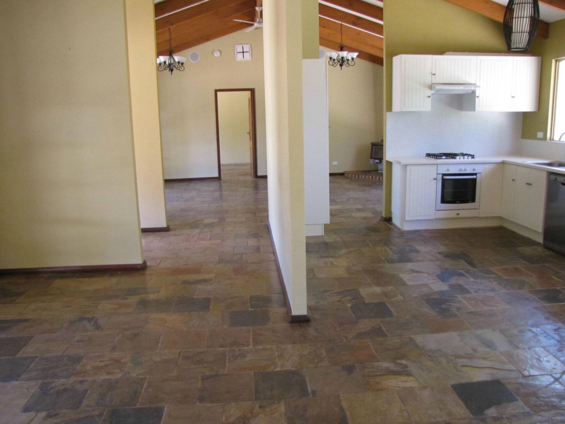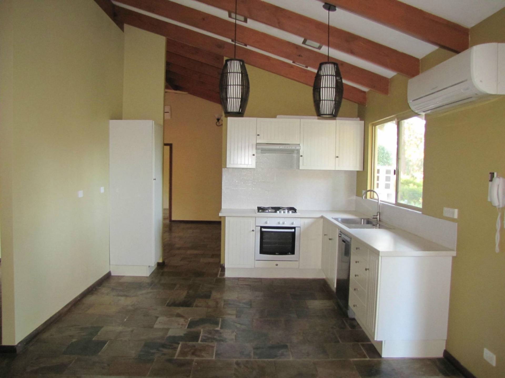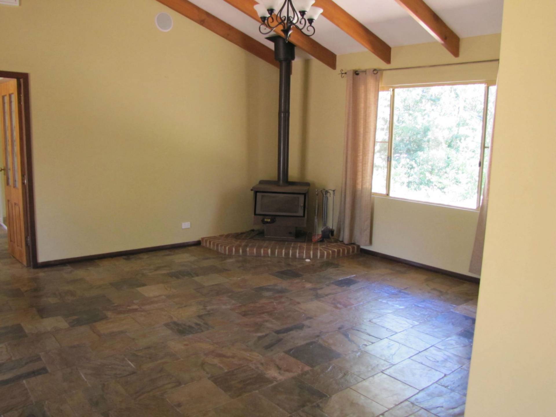 All the living areas have slate floors, the lounge room has a slow combustion fireplace and there are wall unit air conditioners throughout the house.