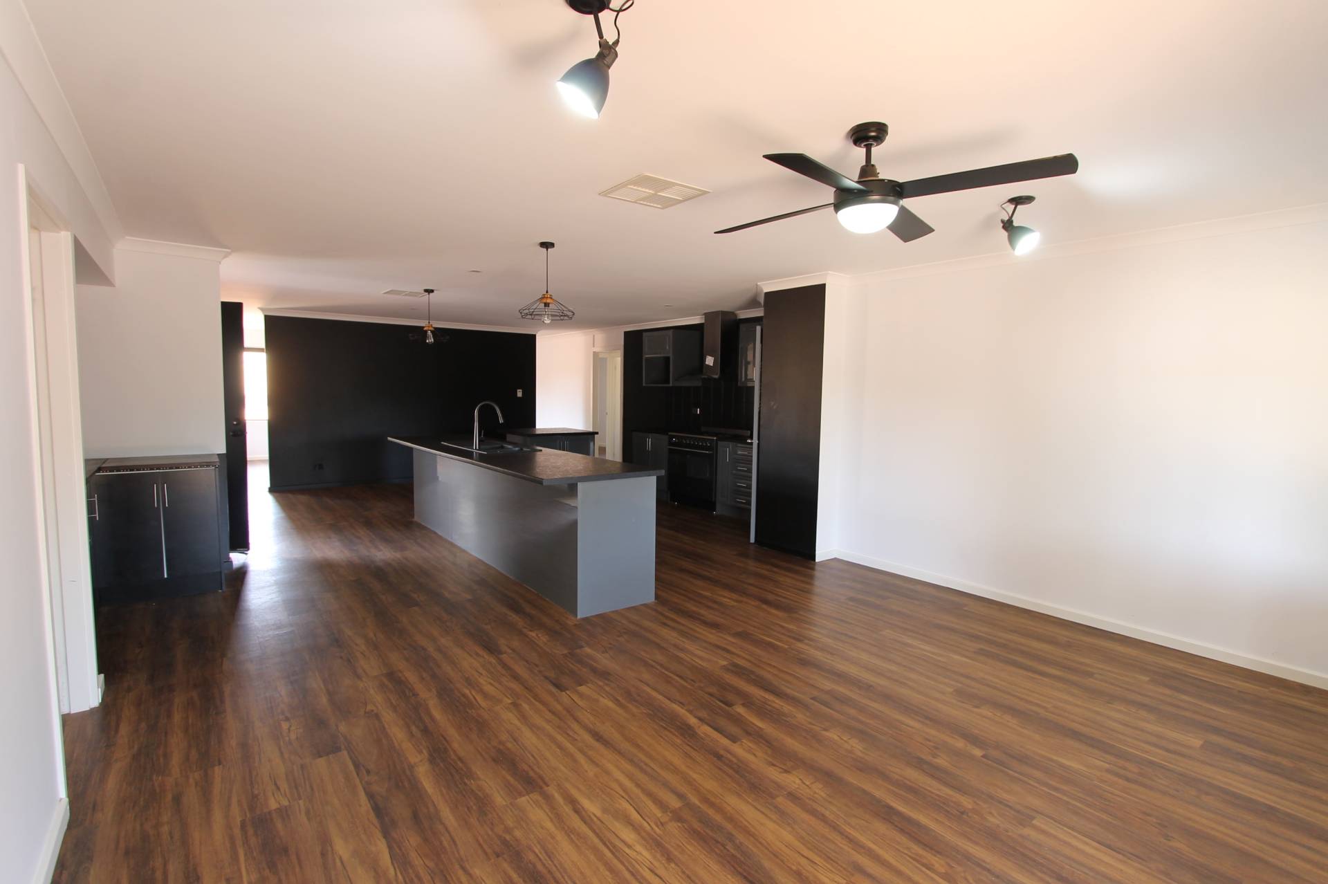 To the lift of the kitchen, we have a separate lounge area which is serviced by a split system air-con and ceiling fan. And then the dining room, also a generous space serviced with an above-ceiling fan.
