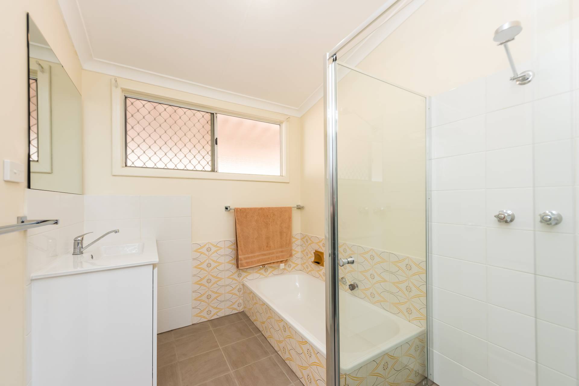 Updated bathroom with seperate shower and bath and  a large vanity