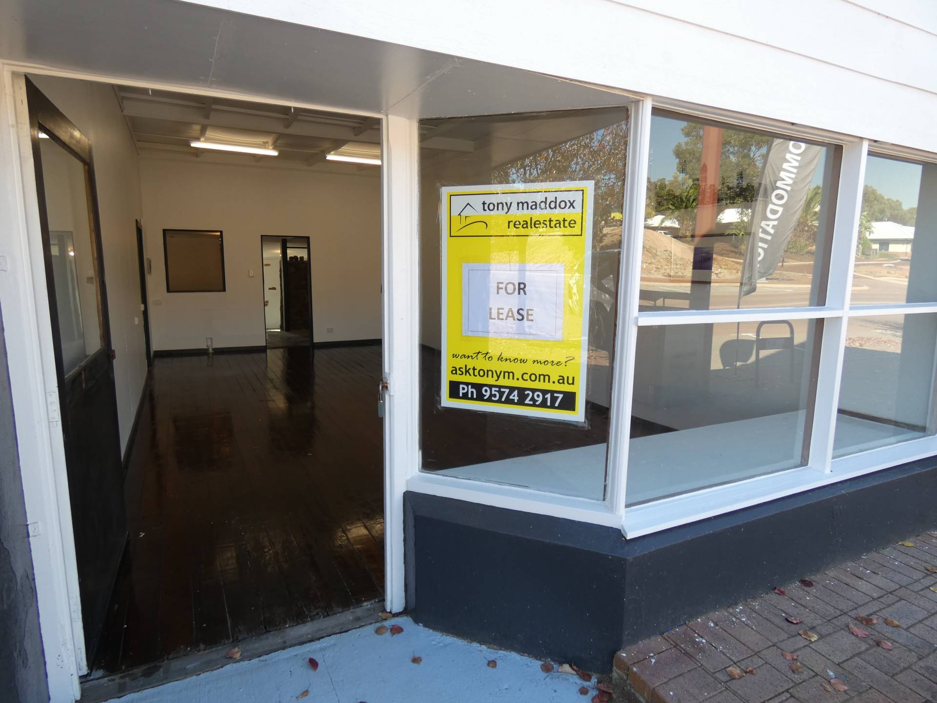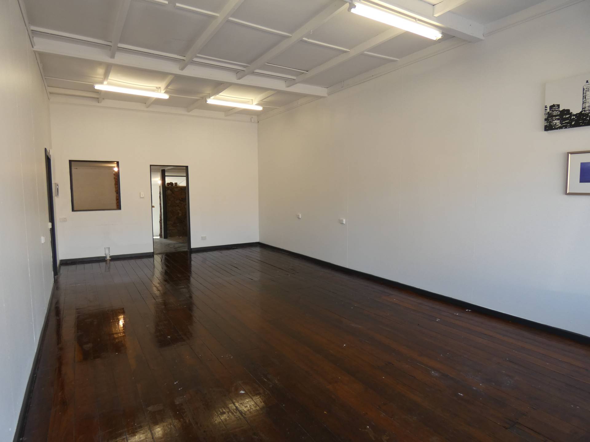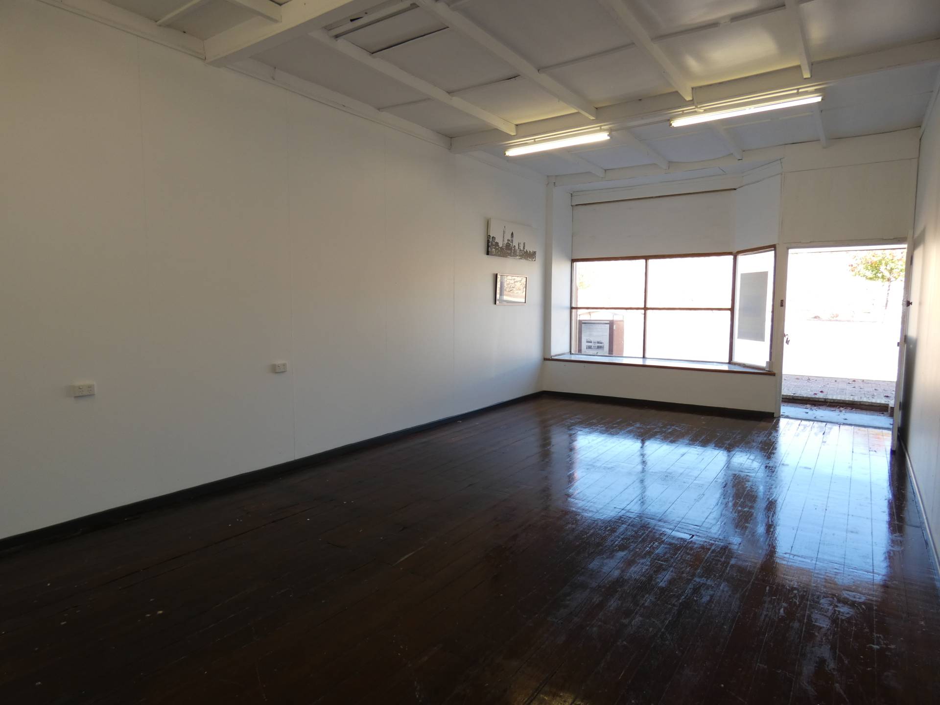 Large front show room (approx. 36m2) with great display window for advertising, plus blank canvas white walls and sanded jarrah floors.
