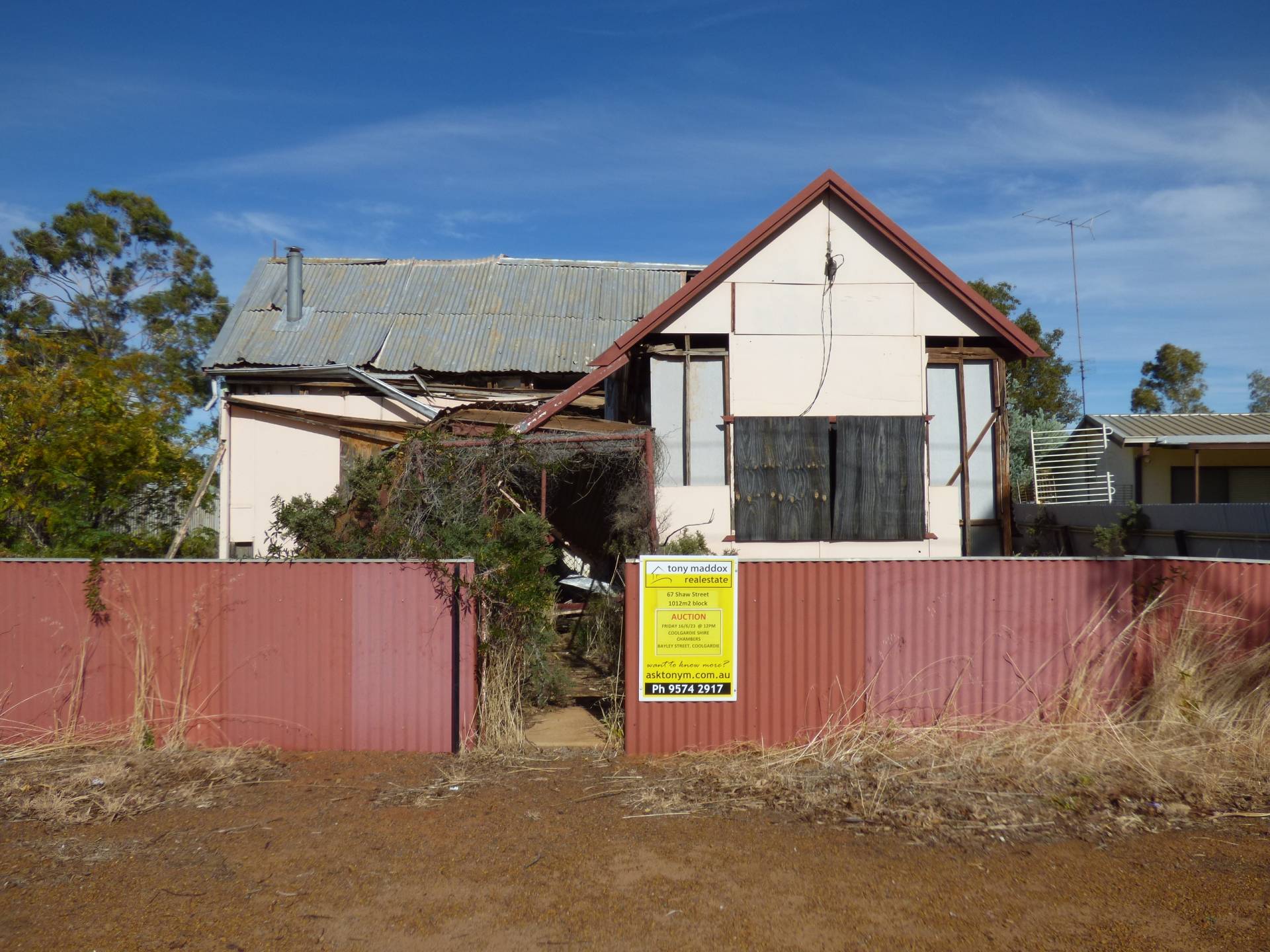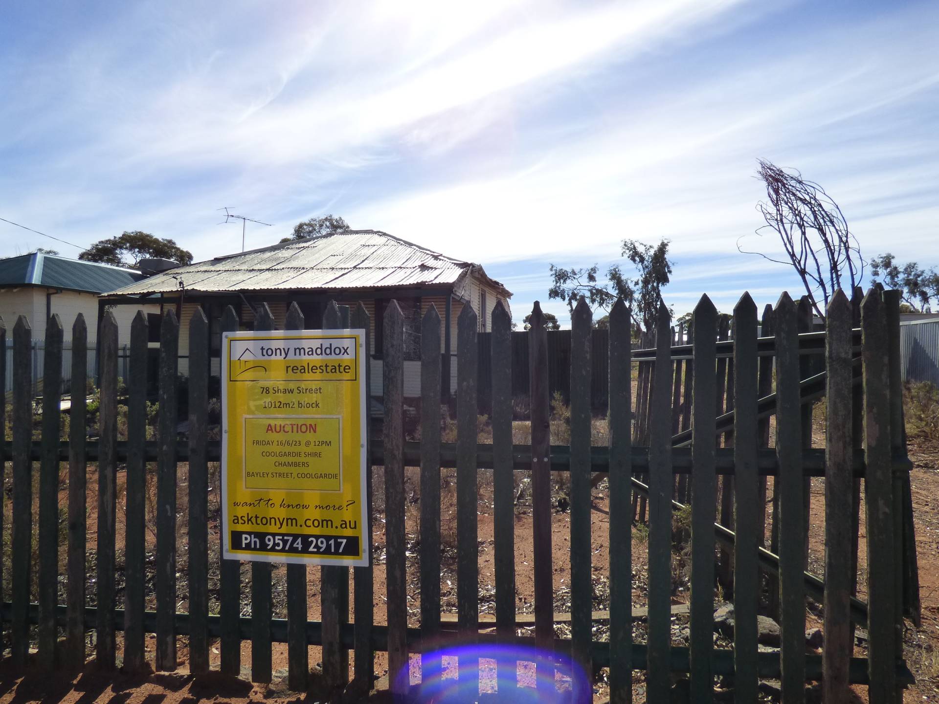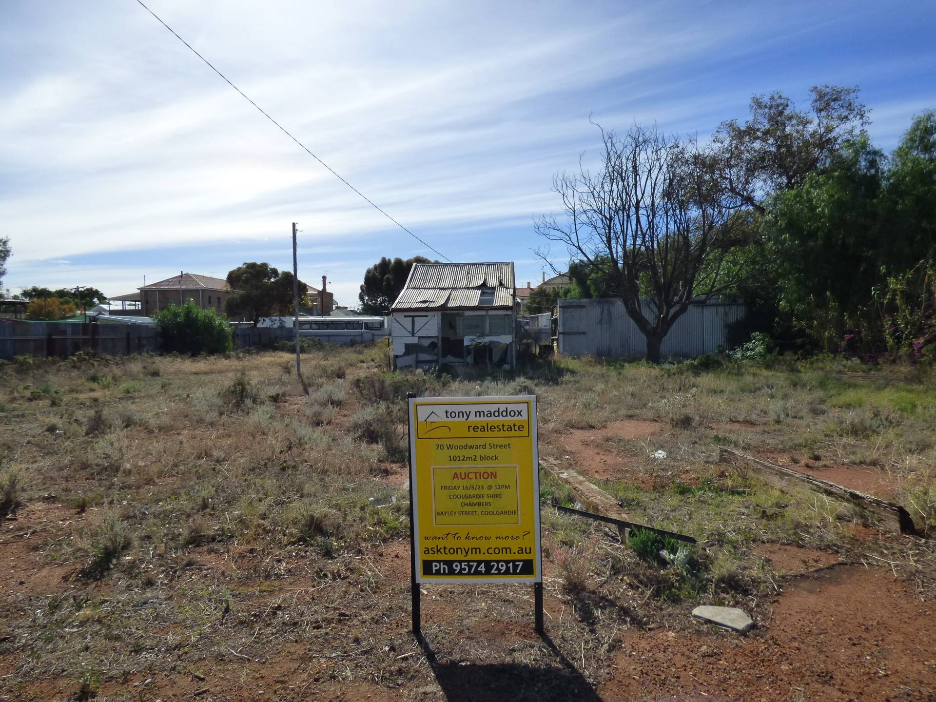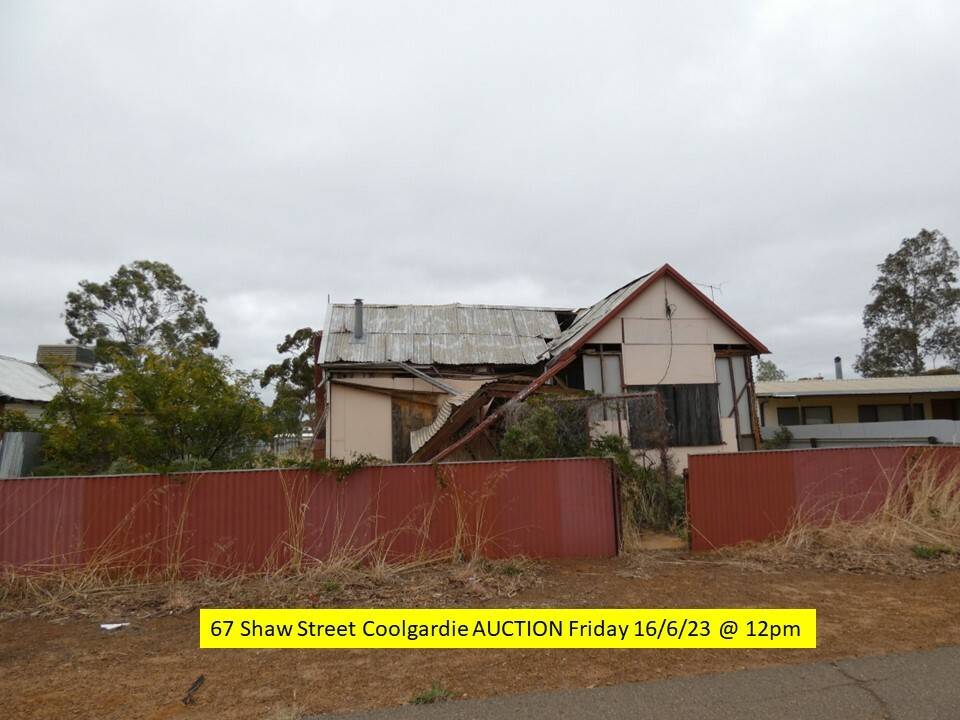 Auction - Friday June 16th at 12pm at the Shire of Coolgardie Council Chambers, Bayley Street Coolgardie