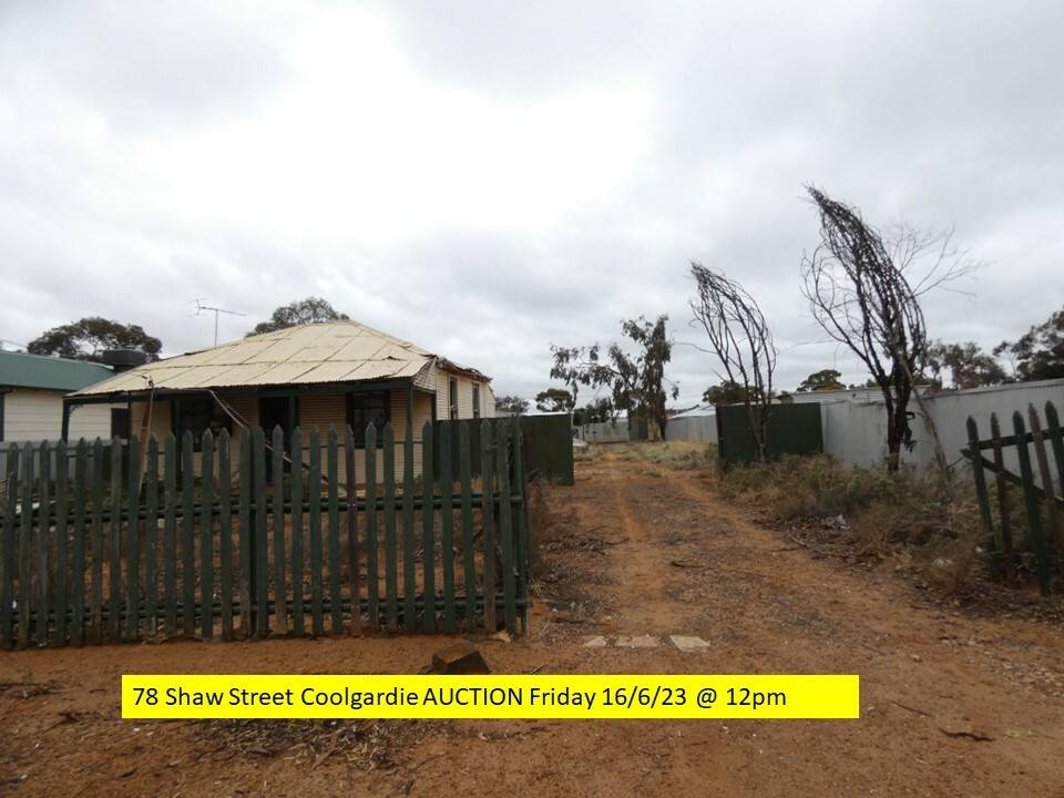 Auction to be held at the Coolgardie Shire Chambers, Bayley Street Coolgardie at 12pm on Friday the 16th of June 2023