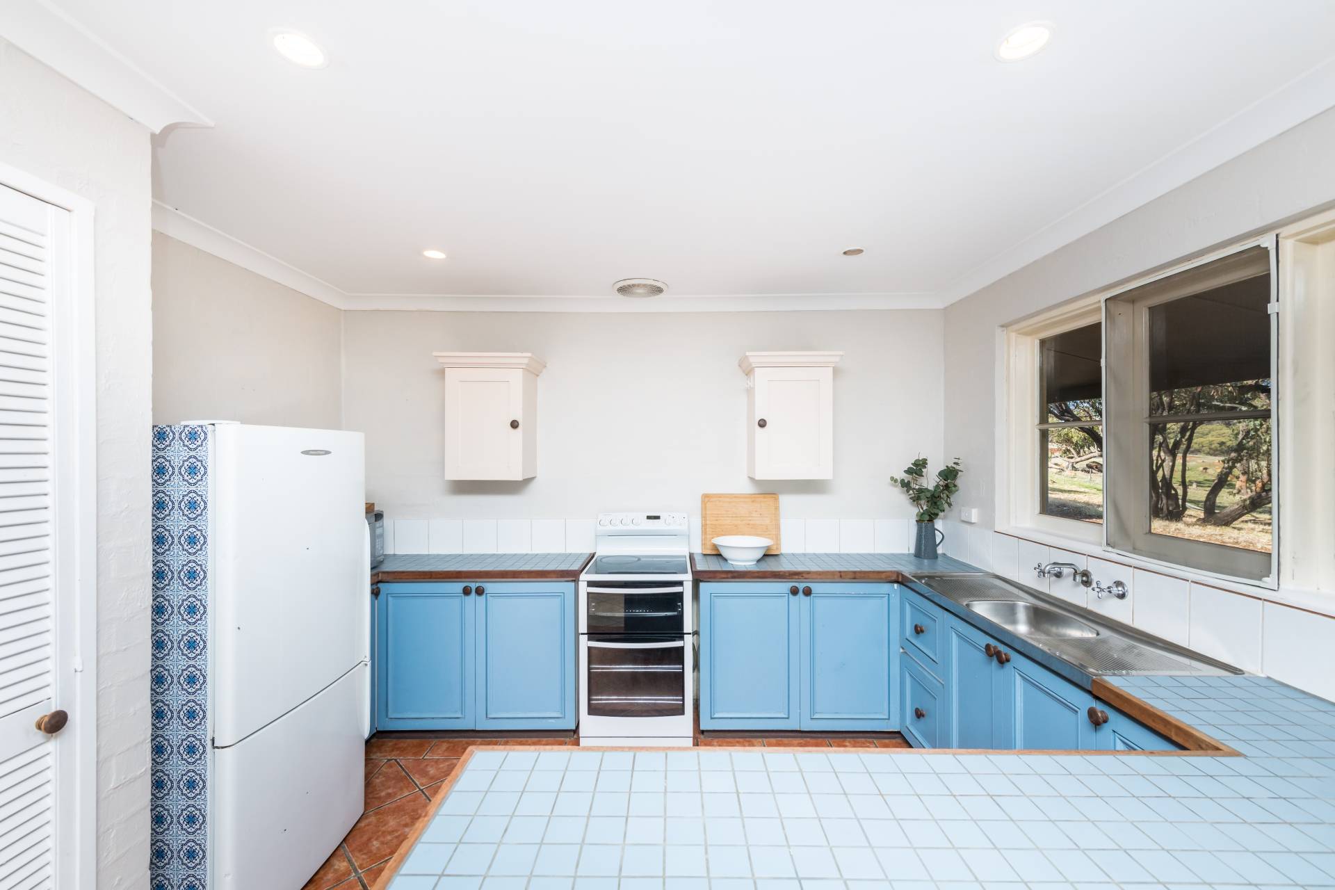 The kitchen features tile benchtops, plenty of cupboard space, lots of bench space and beautiful windows providing views of the property.