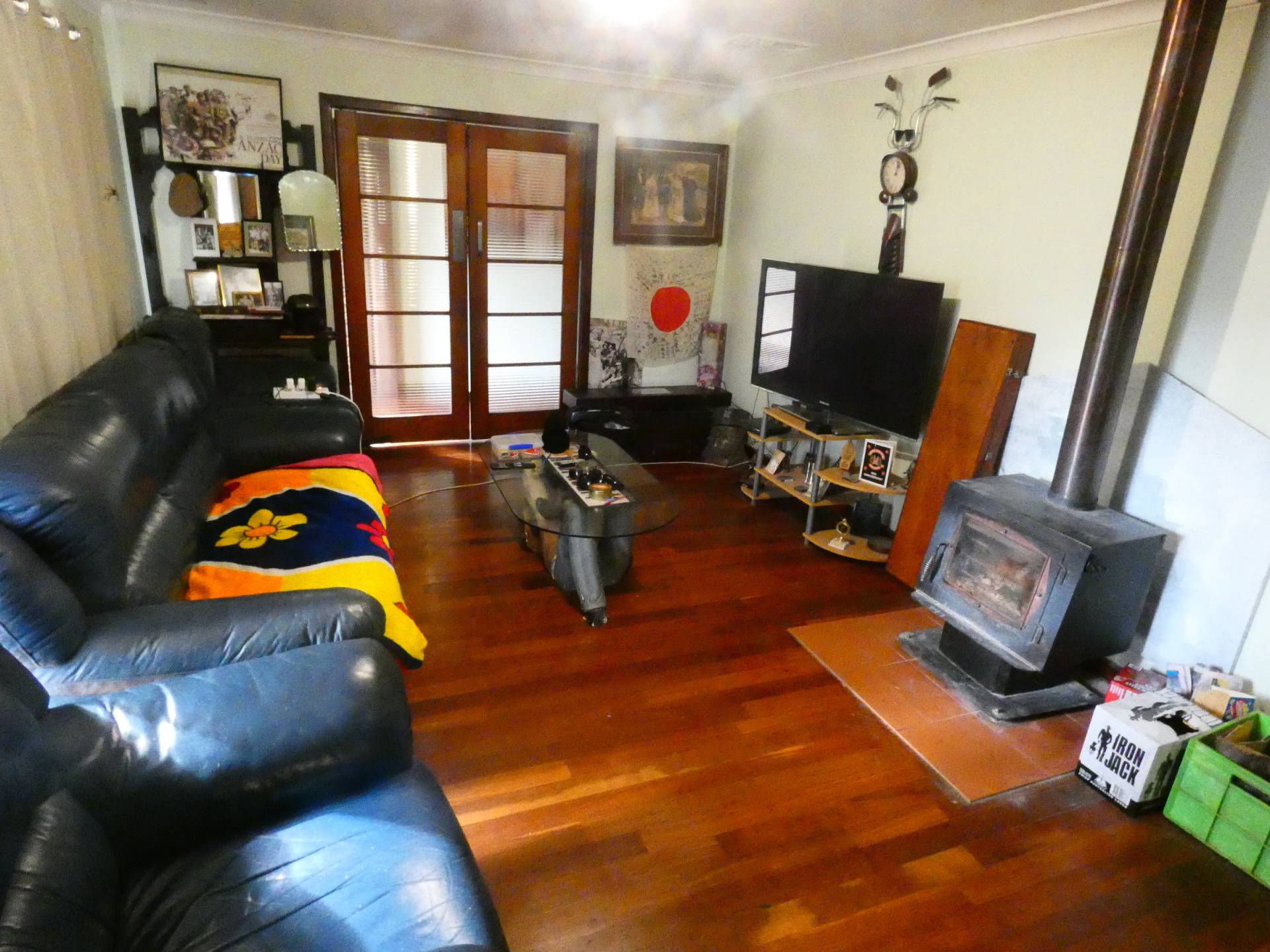 The house features a wood-burning heater, reverse-cycle air conditioning and ceiling fans.