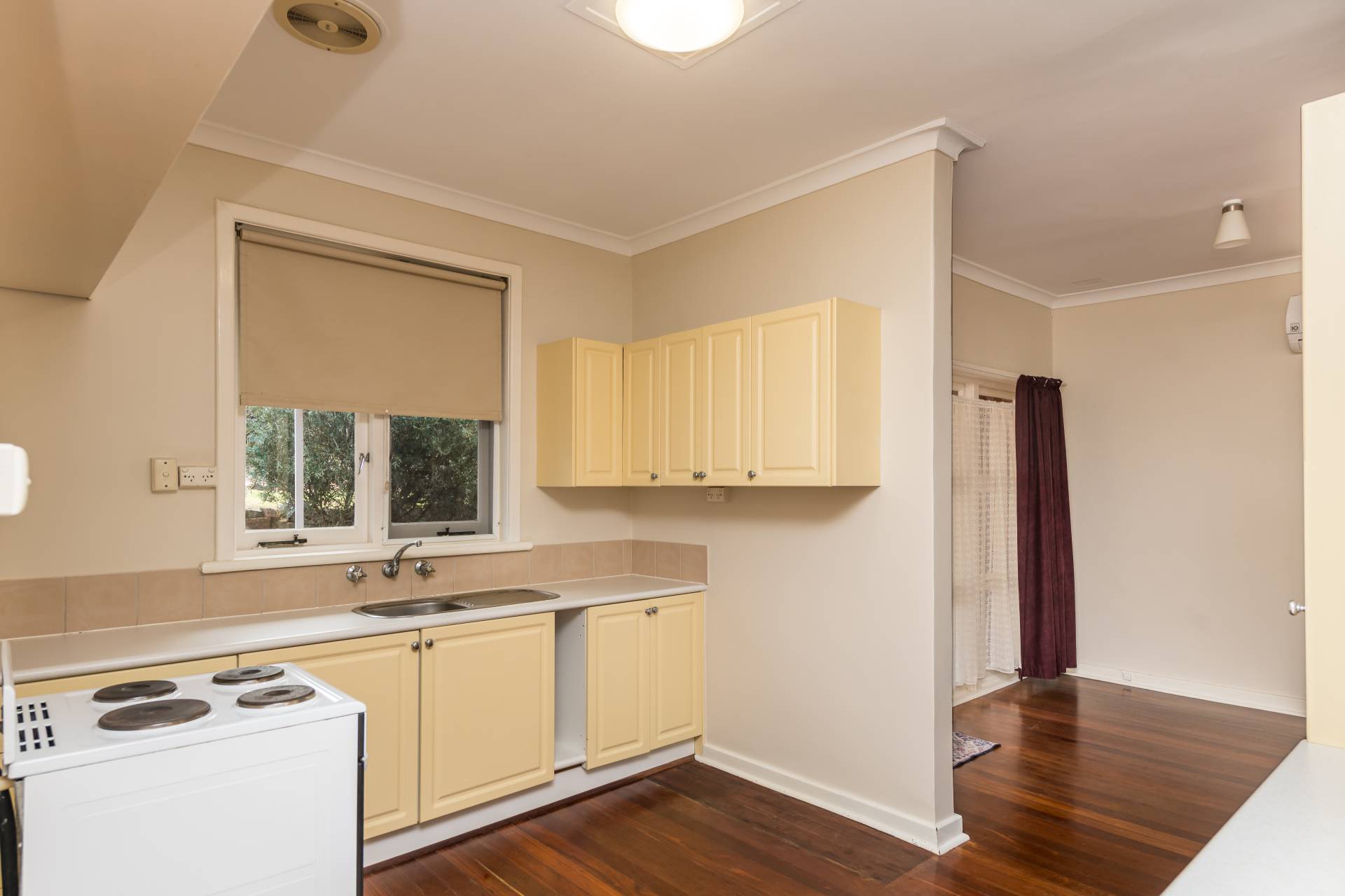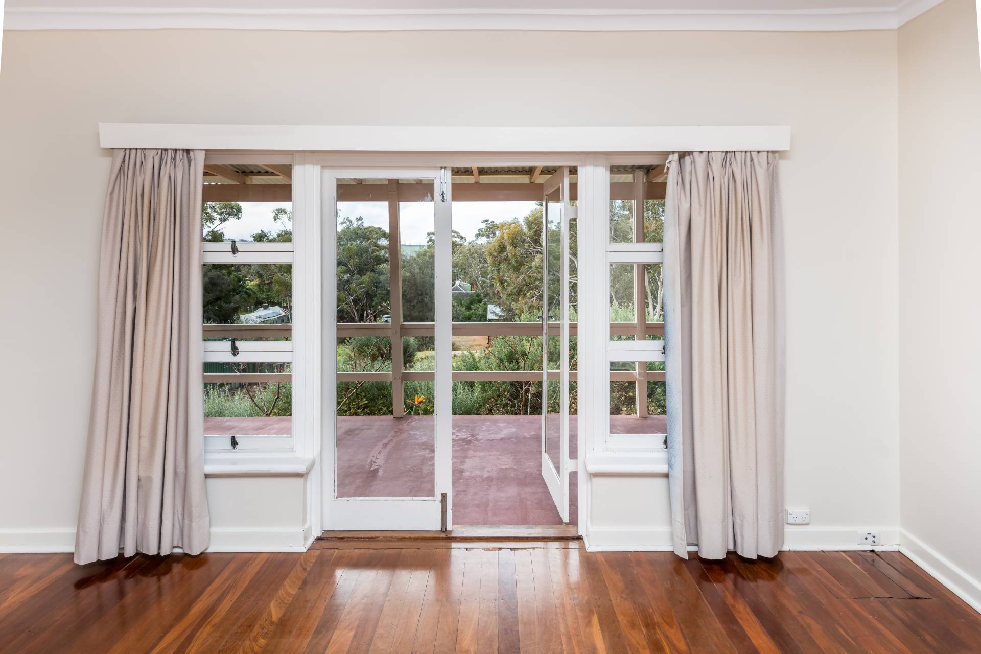 The Living area has an elegant feel, boasting high ceilings, polished wood floors, cosy fire place and beautiful mid-century French doors leading out onto a quaint patio overlooking Toodyay’s picturesque hills.