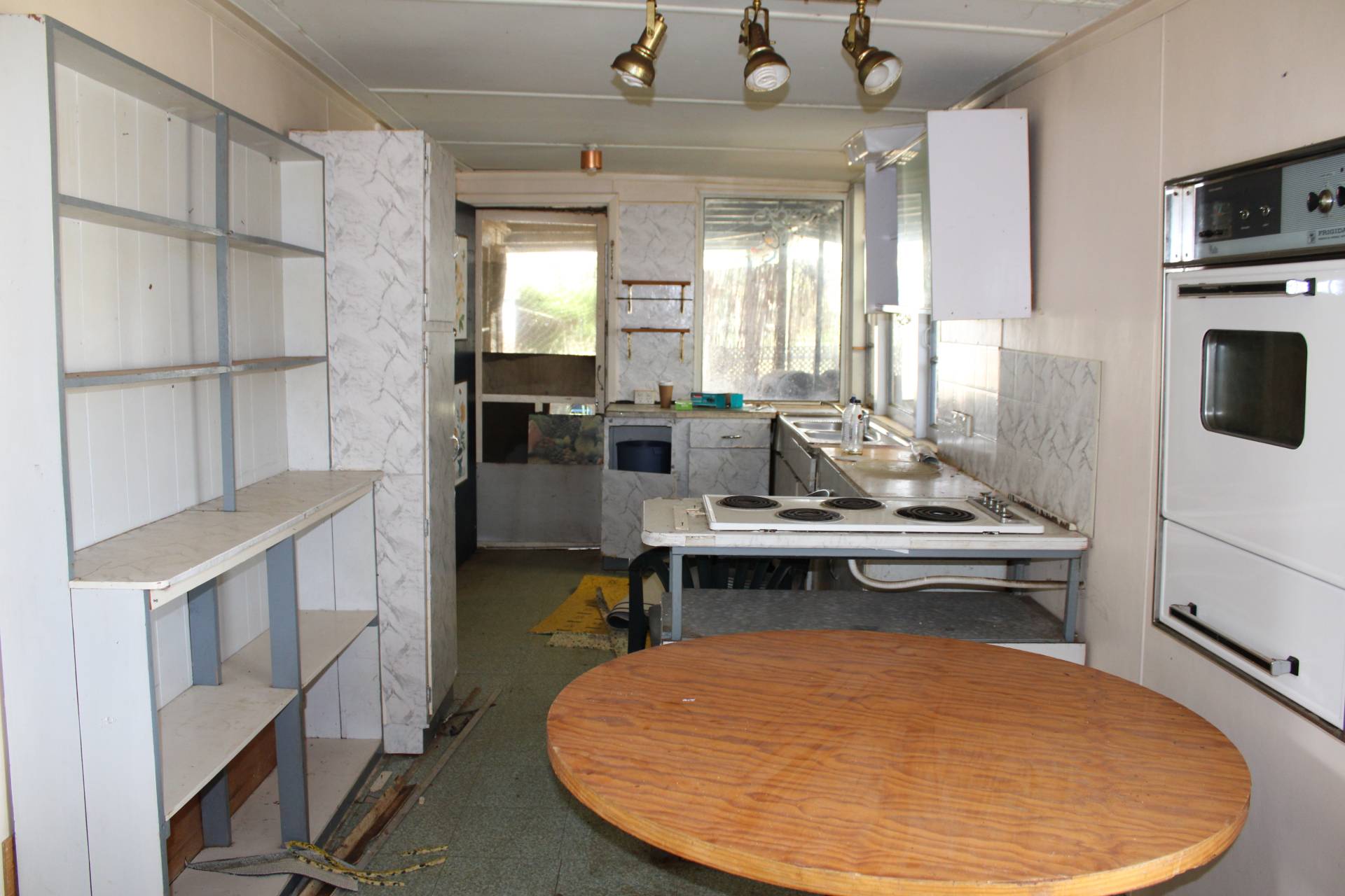 The kitchen and dining area are of good size with electric bench top cooking and an old style wall oven. This area has plenty of room to renovate and extend your kitchen cabinets to create a larger space.