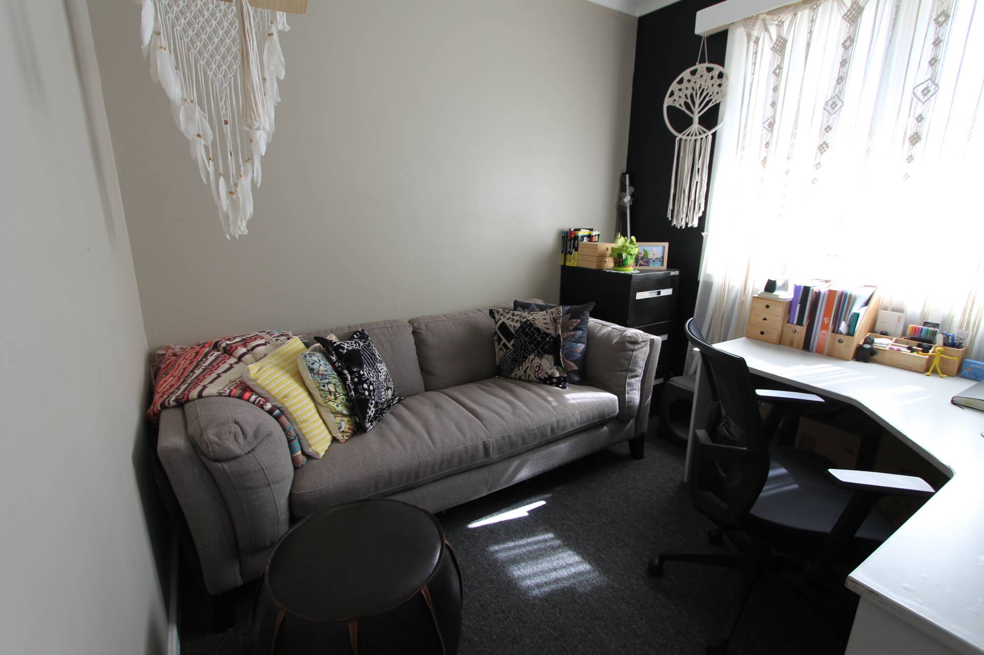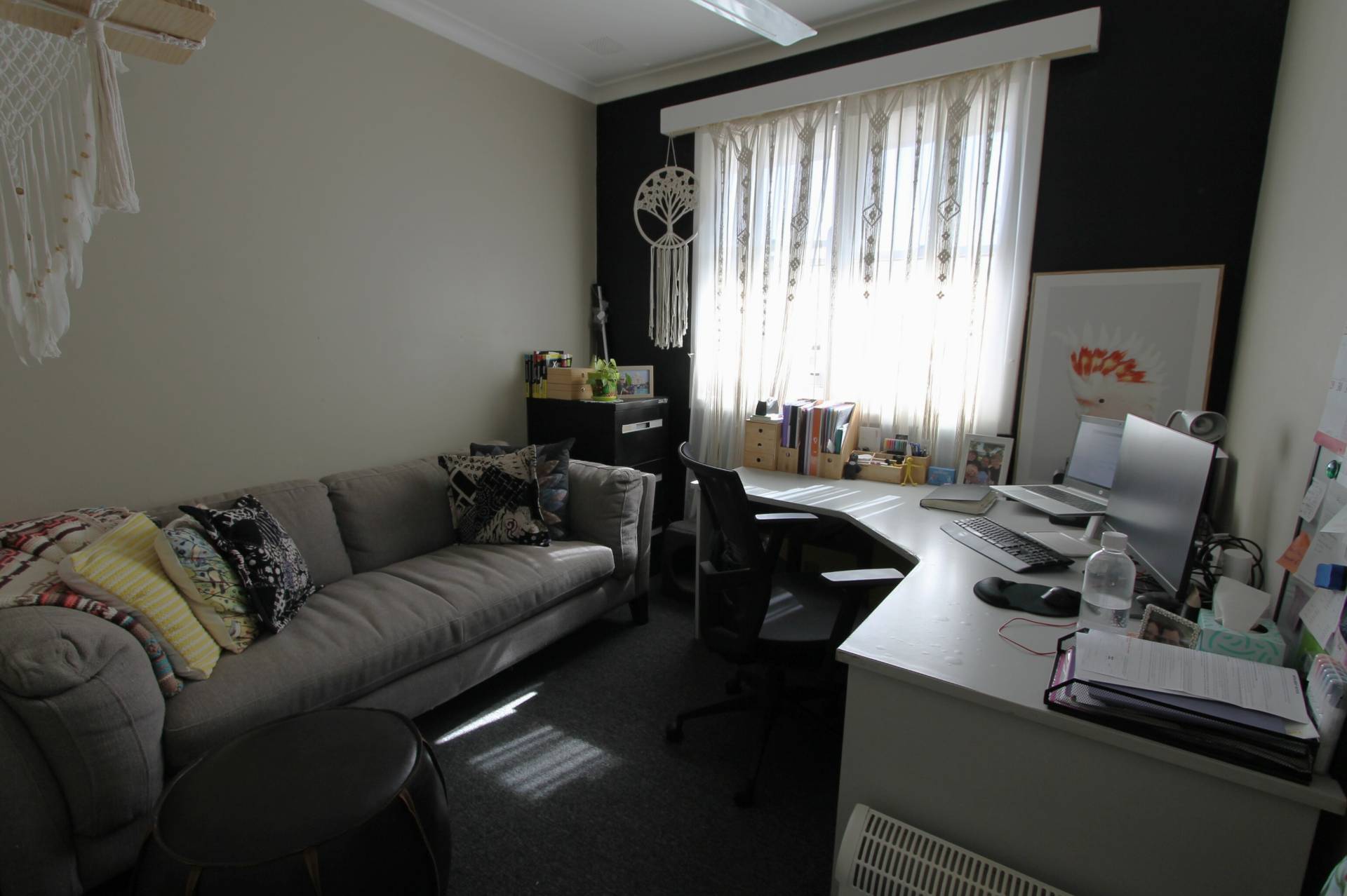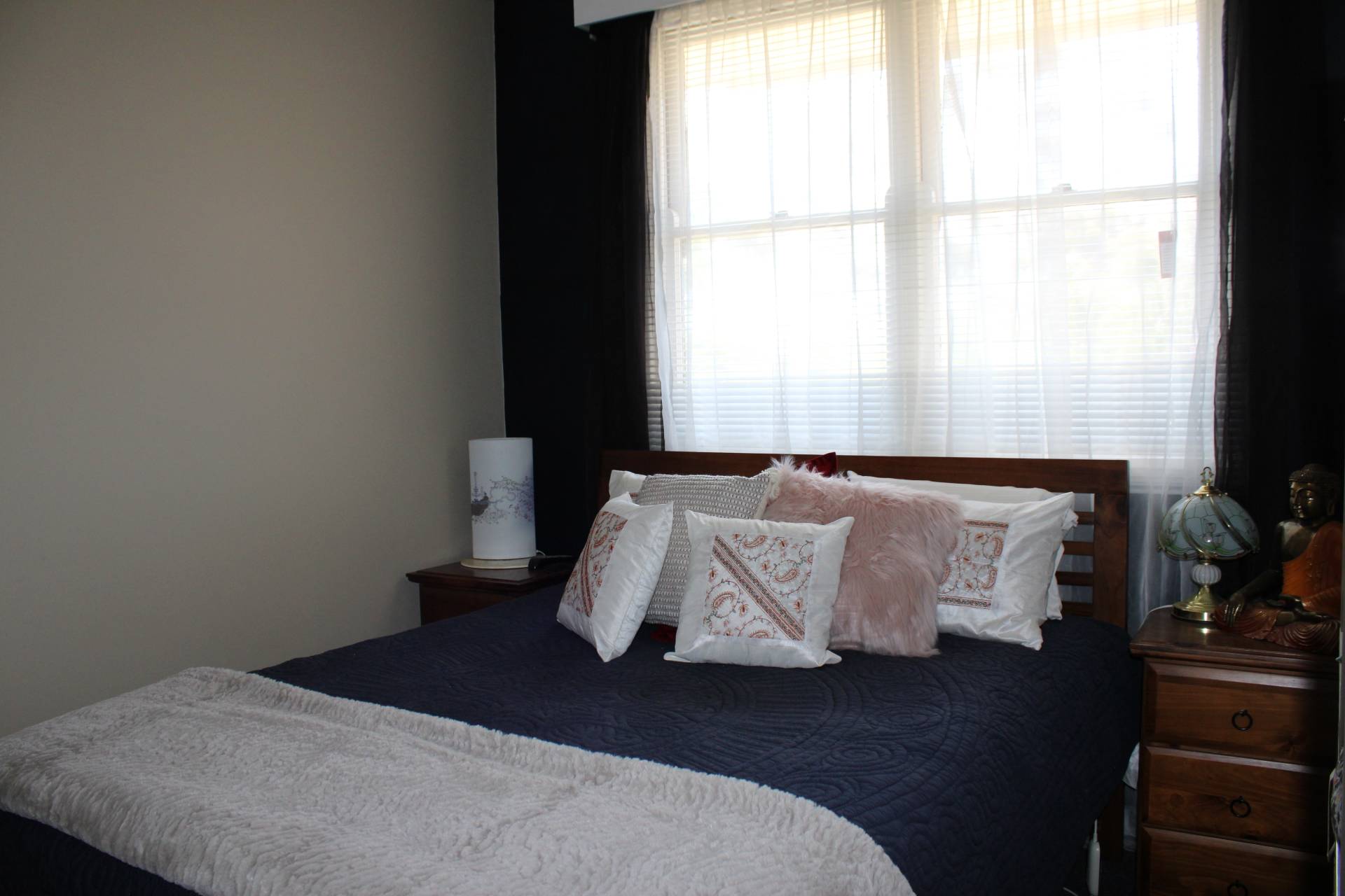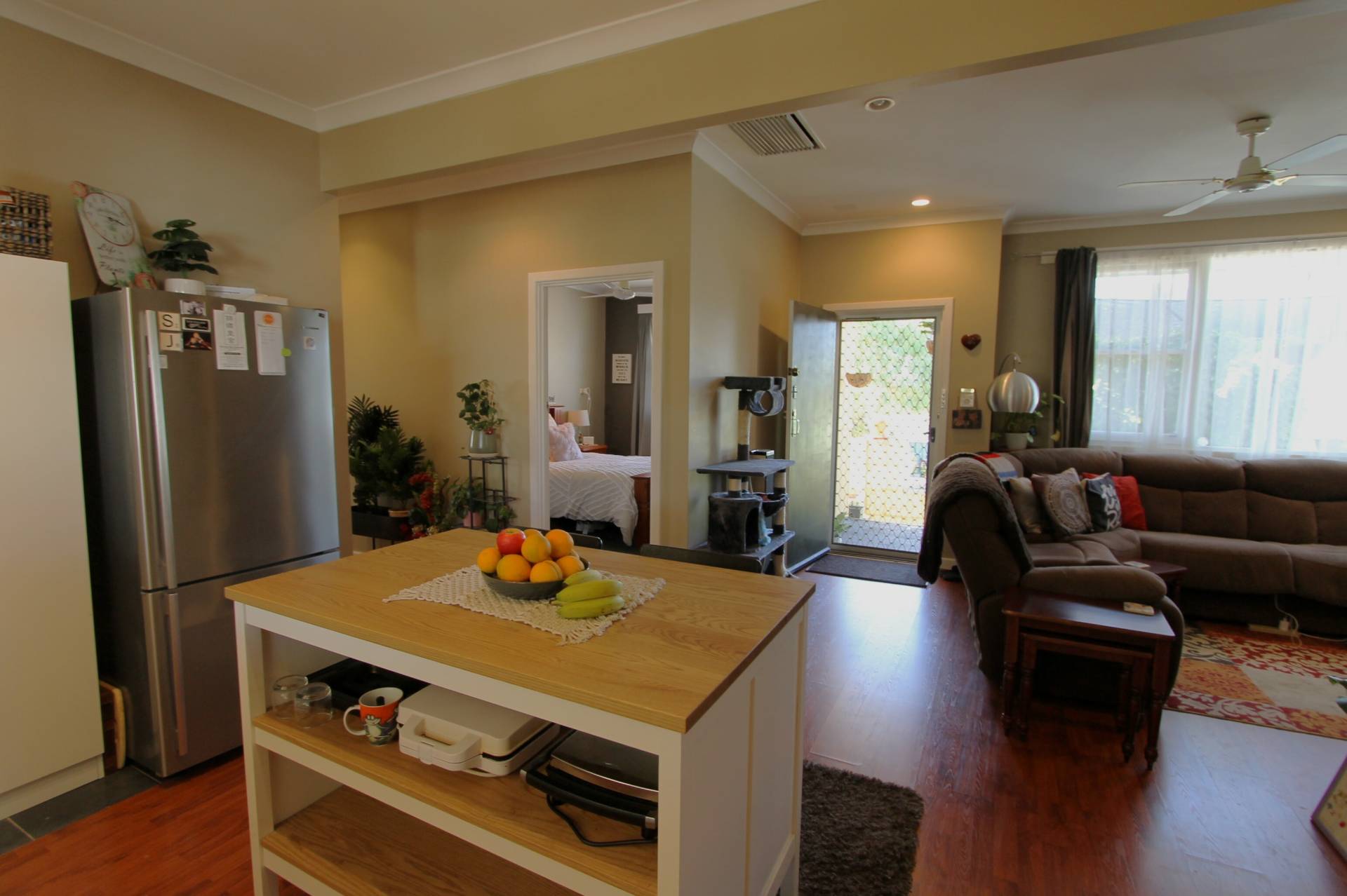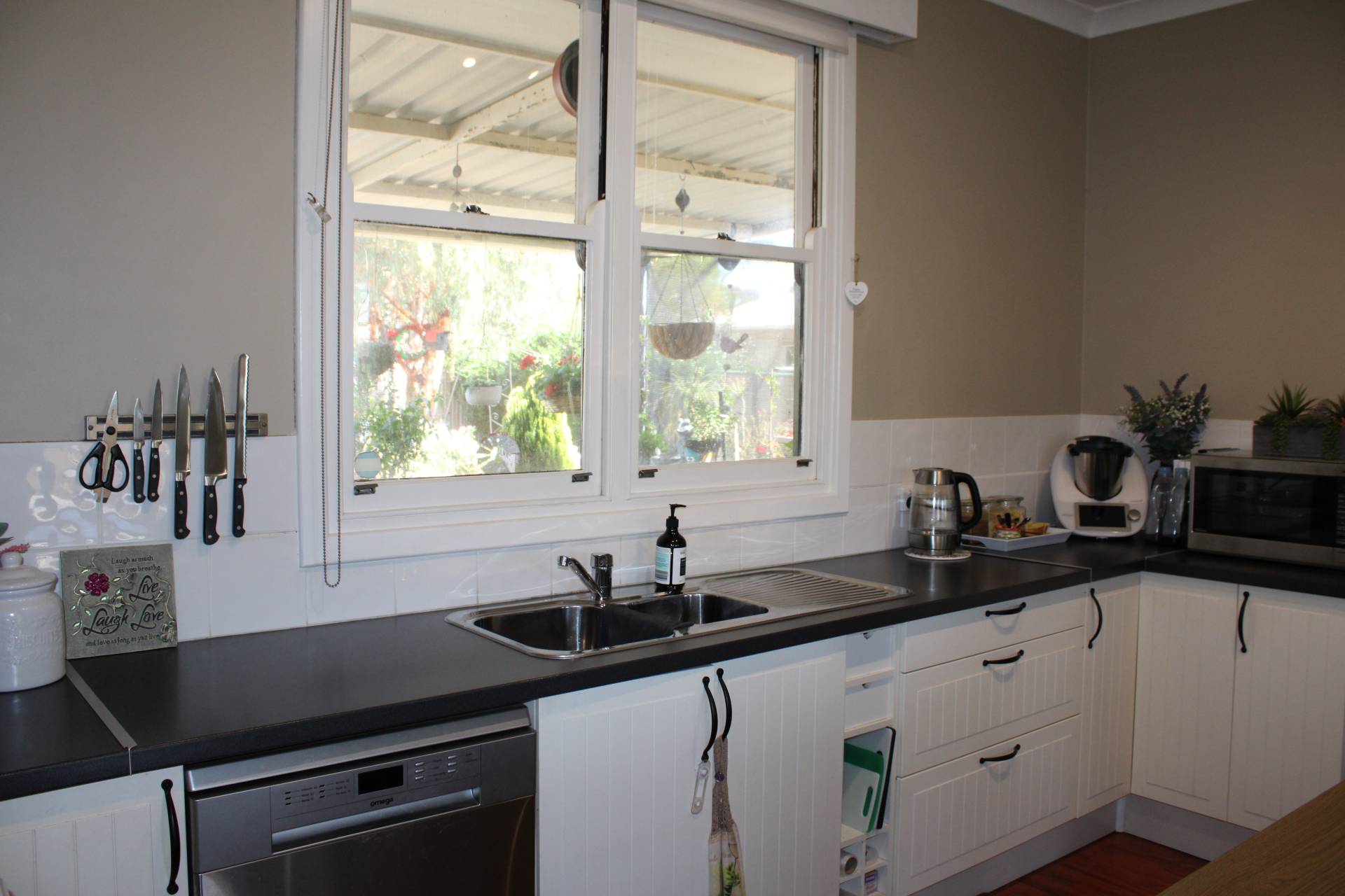 The modern kitchen is very productive with lots of storage and plenty of bench space. The island bench is an added bonus for ease of meal prepping and cooking. Featuring electric cooking and a dishwasher and views over your well-set rear patio and gardens.