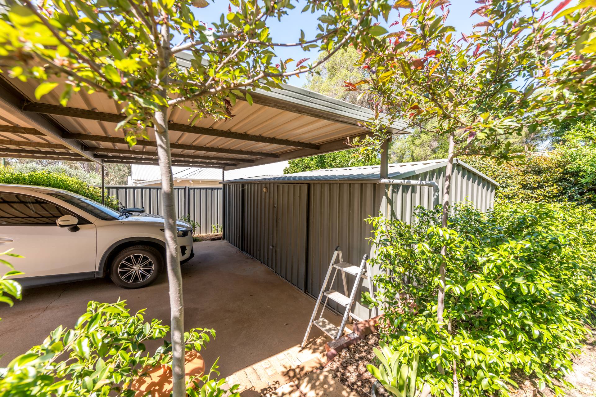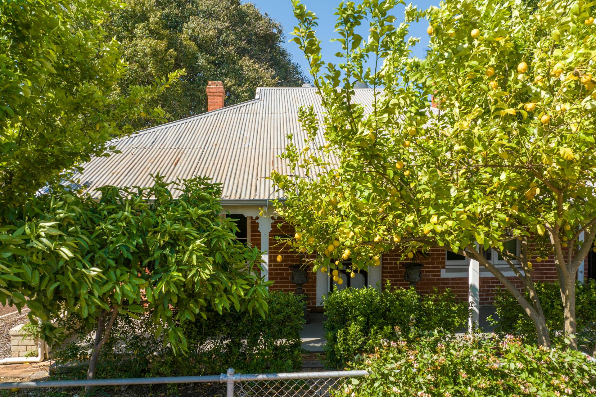 It's a corner block with a double carport you access down Herbert Street or enjoy the main street front at your disposal, ensuring plenty of room for families and friends to park. From the front, we have a lovely porch and a nice easy-care garden with neat hedges and lemon trees providing privacy, shad, and of course, fresh lemons.