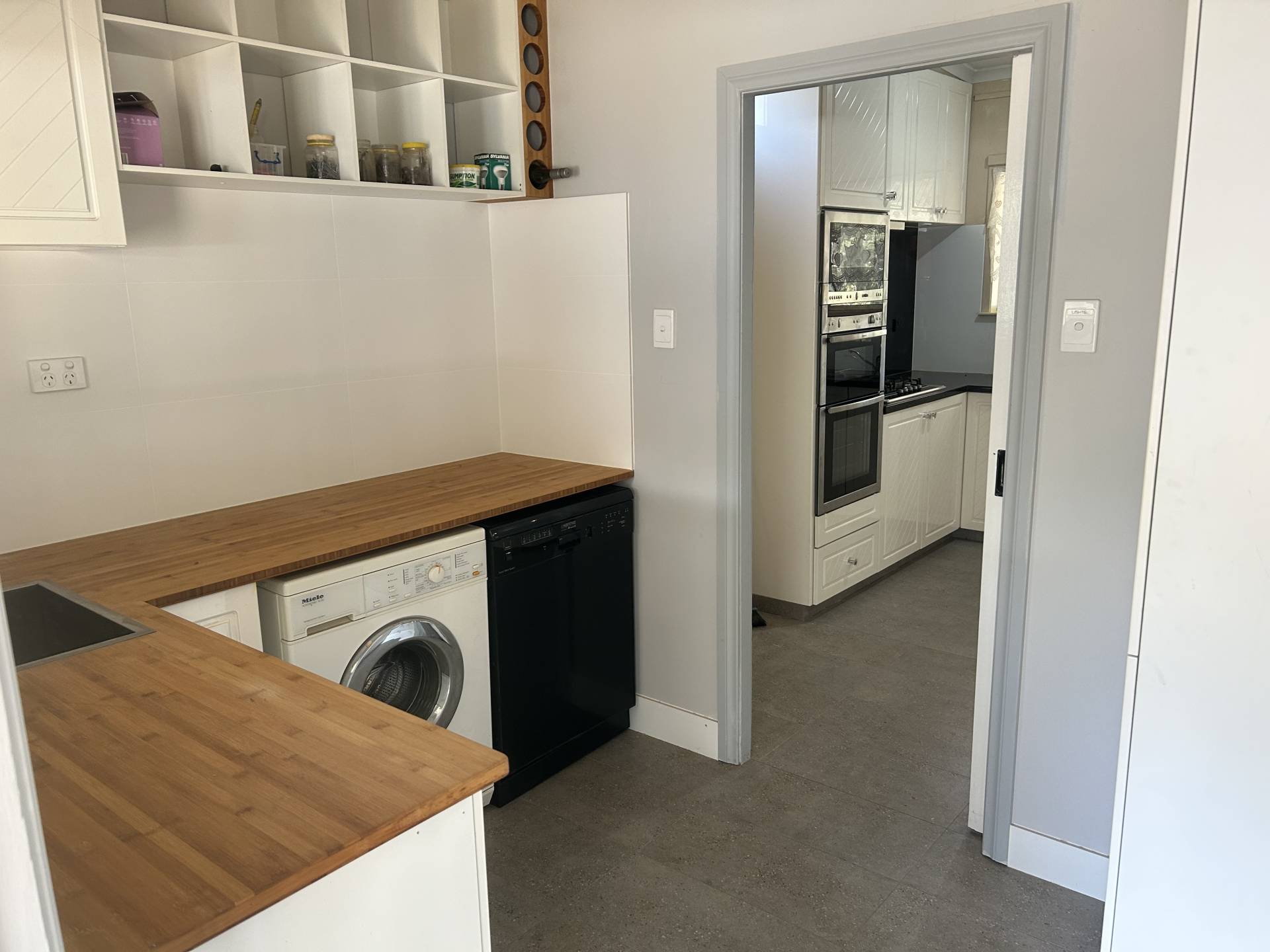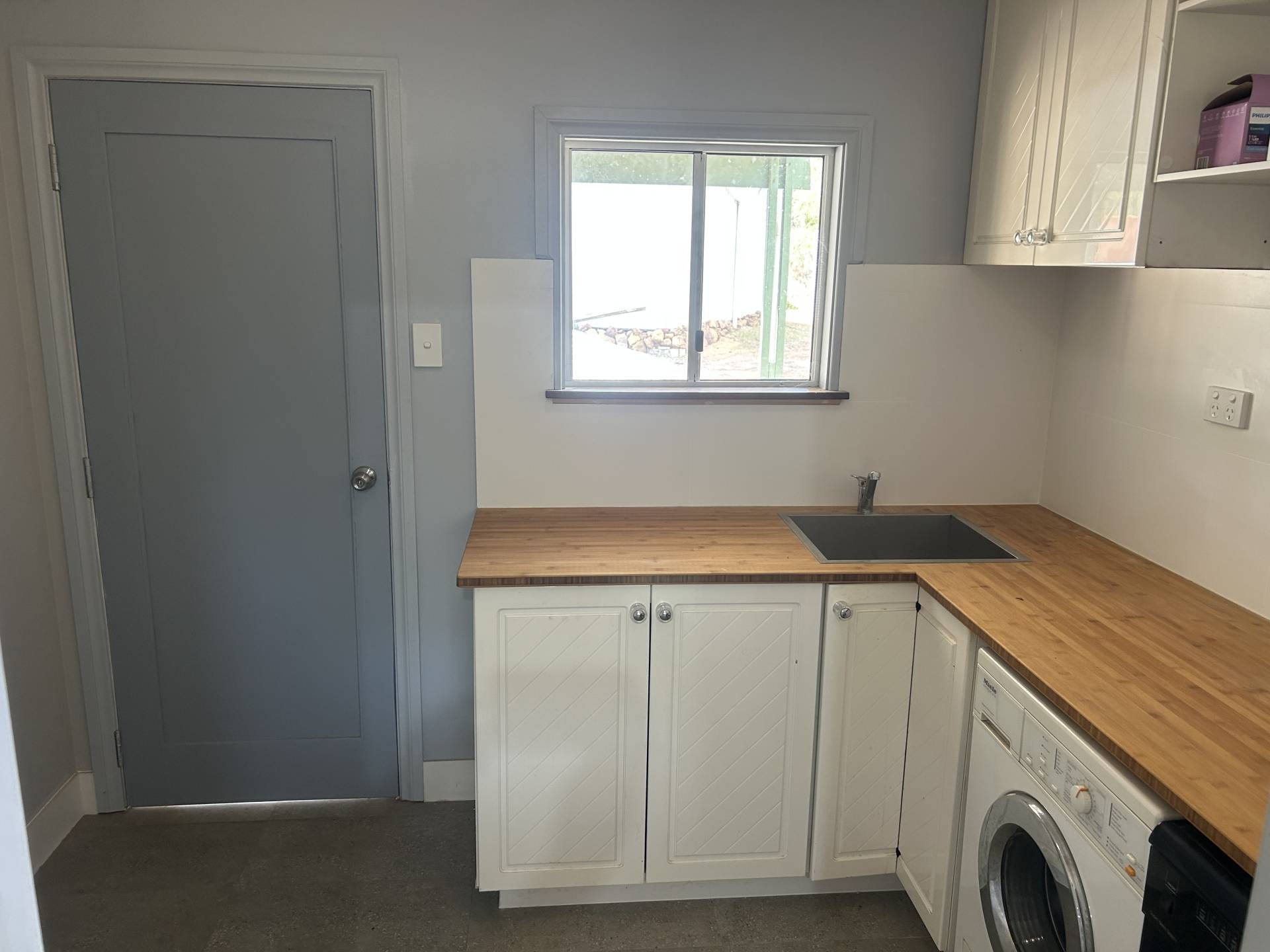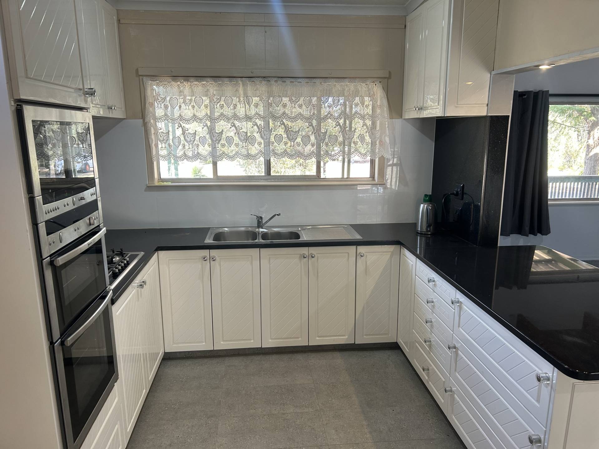 To the left boasts the updated kitchen, finished with a modern design providing ample bench space, a double sink, an electric oven, gas cooktop and plenty of cabinet storage. Leading from the kitchen is the scullery with under and overhead cupboards, efficient bench space and external access, ensuring good flow from the laundry straight out to the front porch.