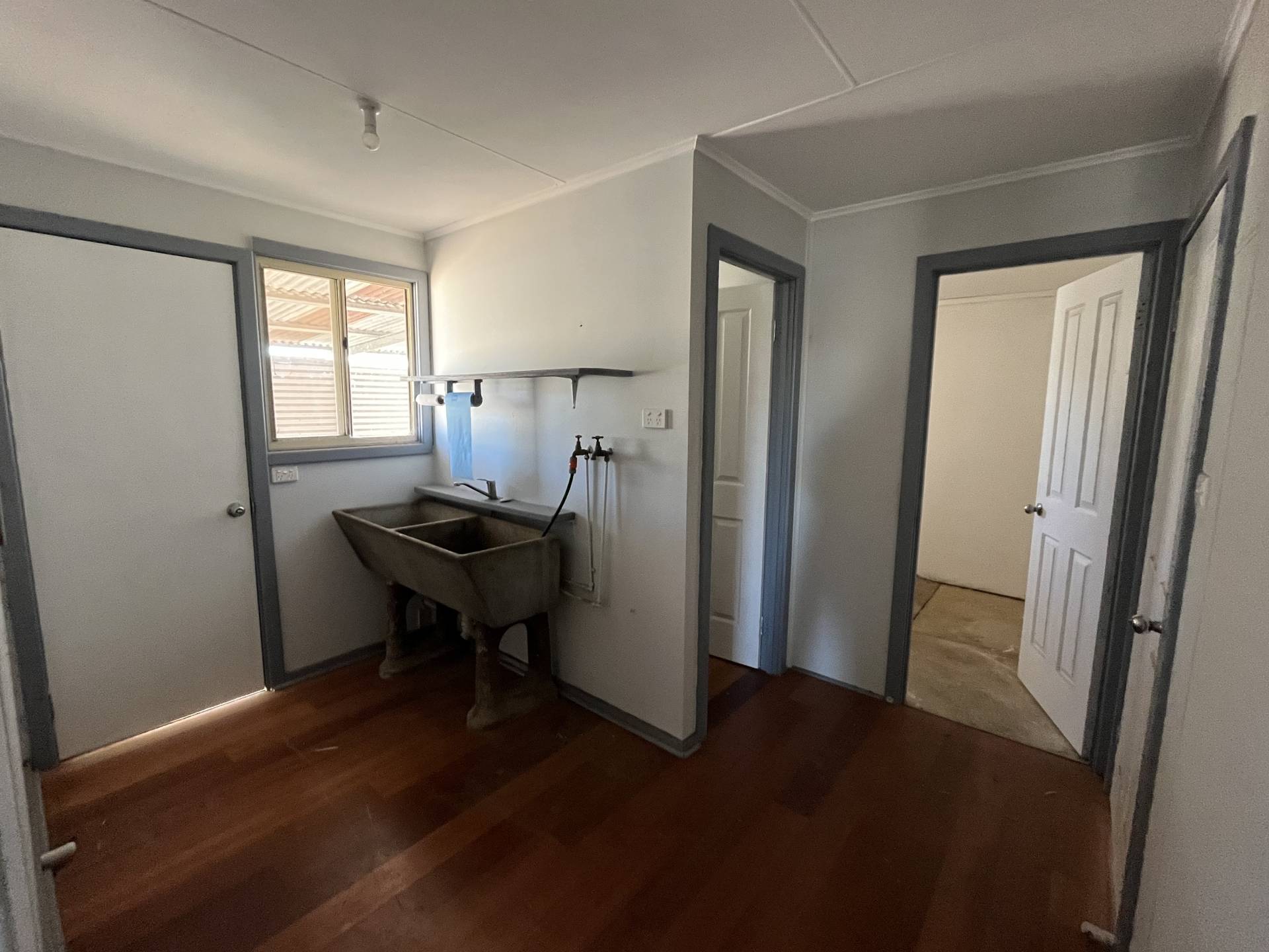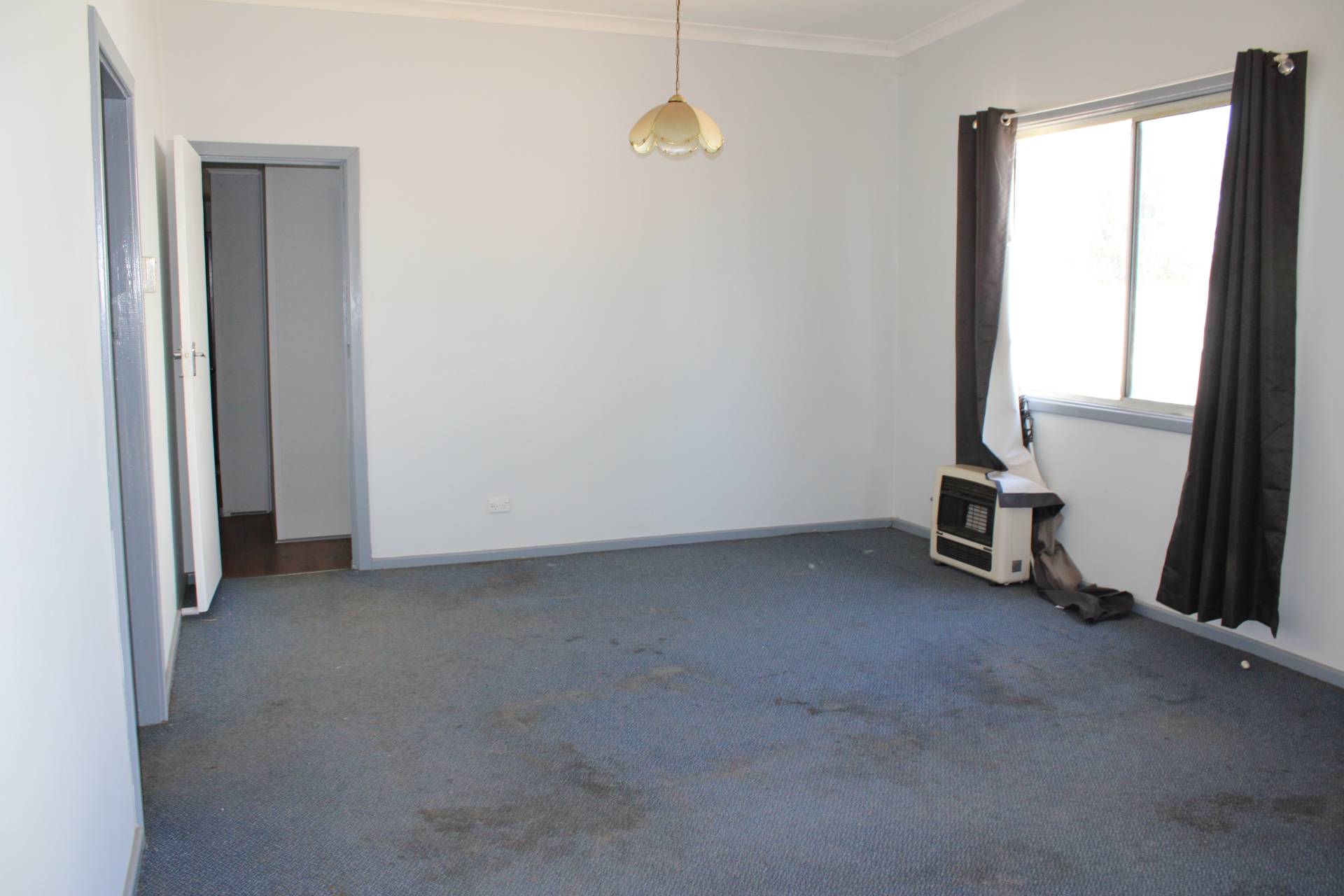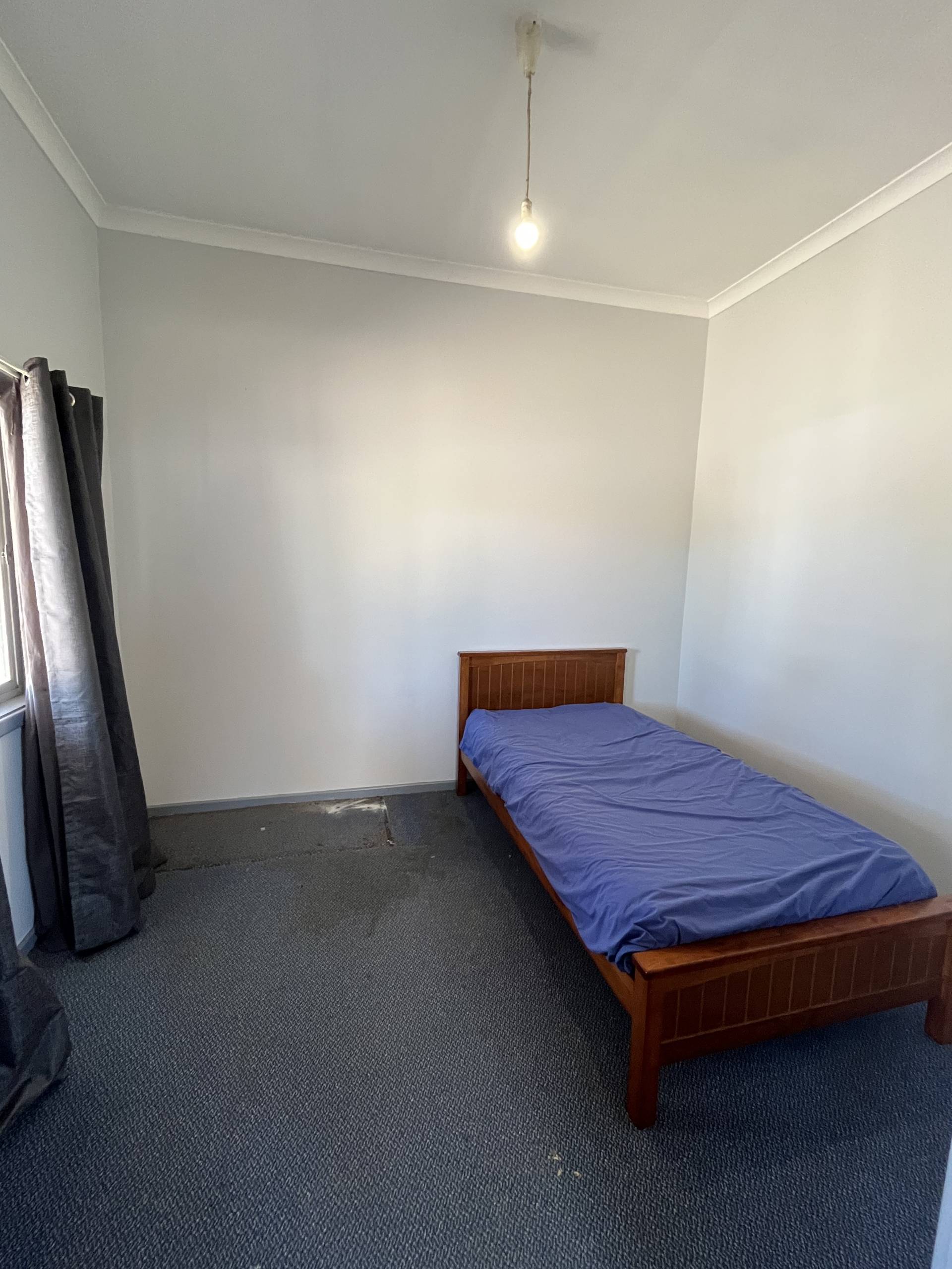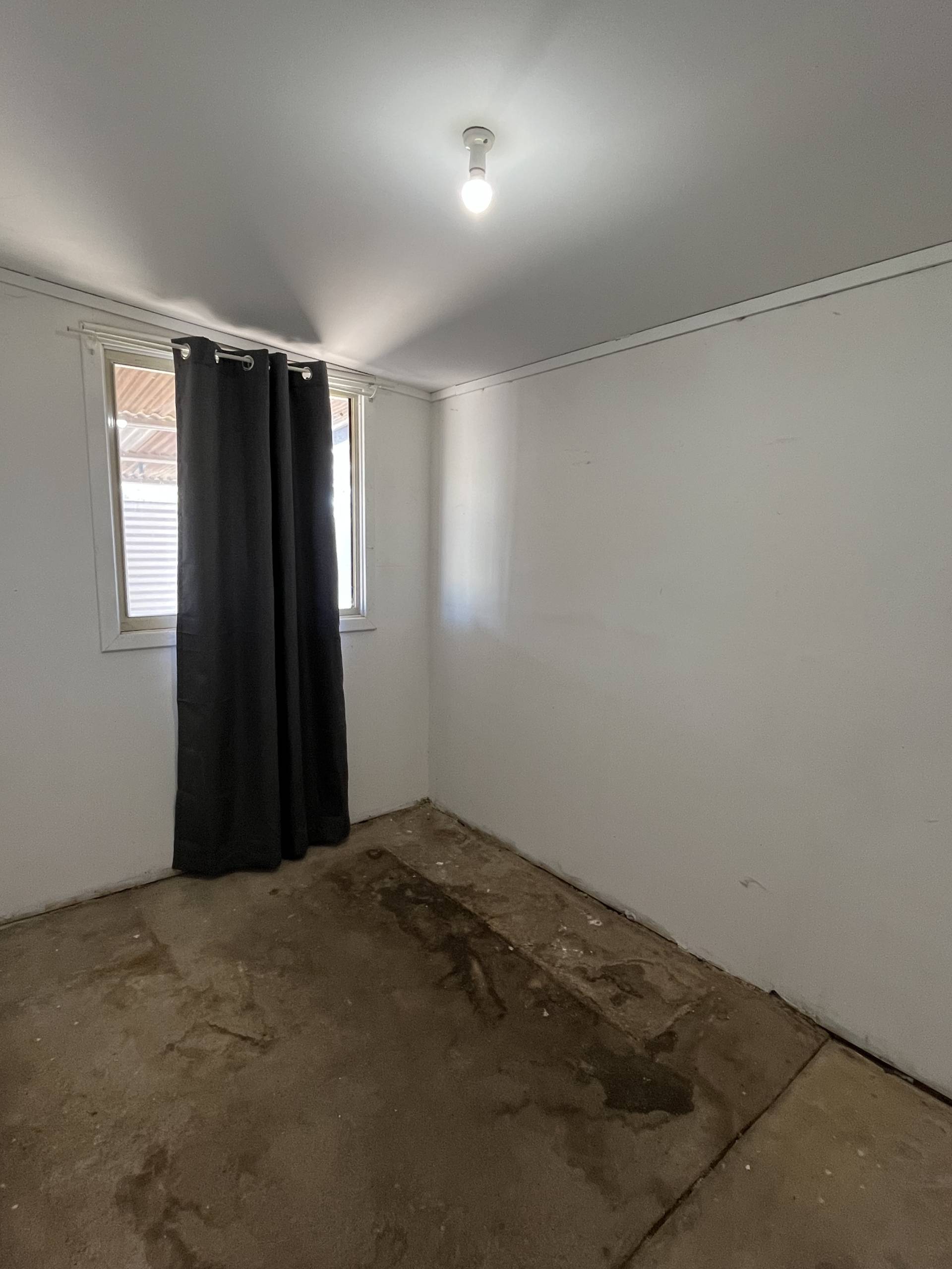 To the front of the house you walk into your large lounge room and have the main bedroom nestled to the left side of the lounge. Both in neat condition with neatly painted walls and a ceiling fan to the main bedroom.