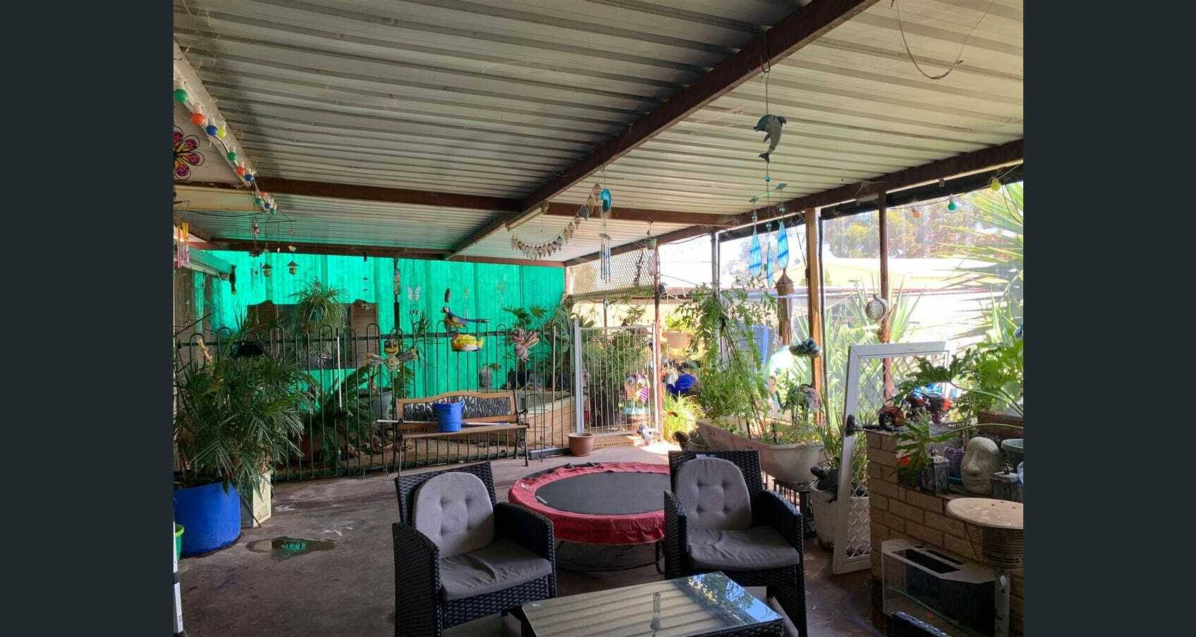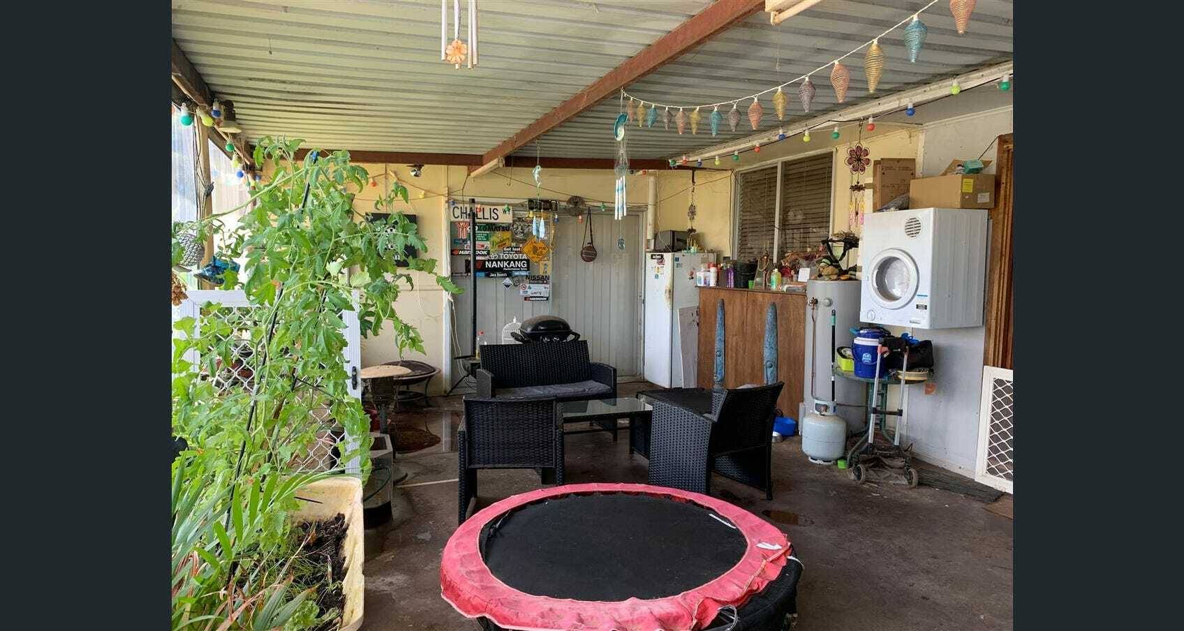 Across from bush land in Merredin, this 4 bedroom home is in a quiet location, on a 1242m2 block. The front verandah is tucked away and nestled amongst an array of plants with a large semi enclosed patio area – the idea place for gardening and growing veggies.