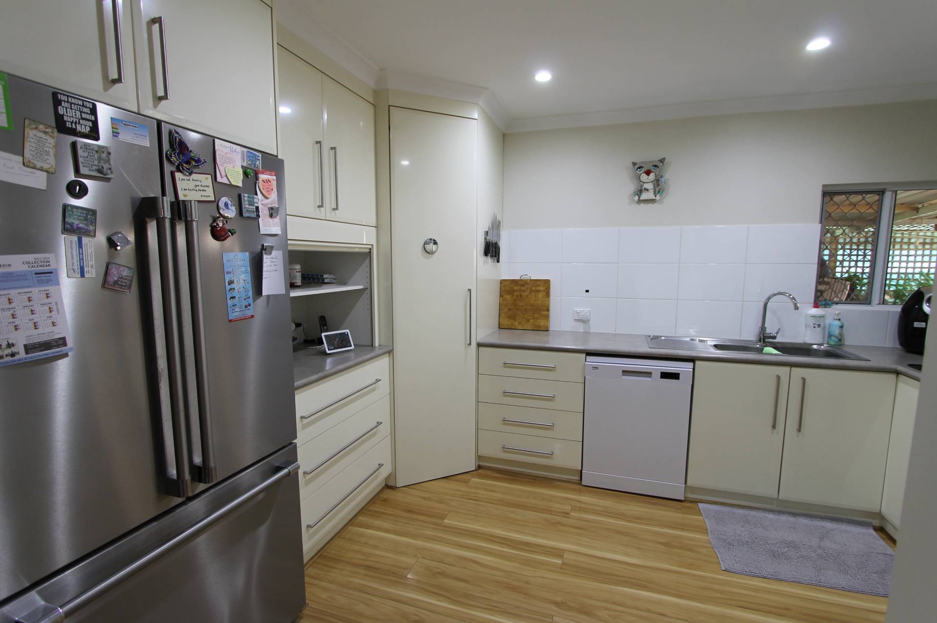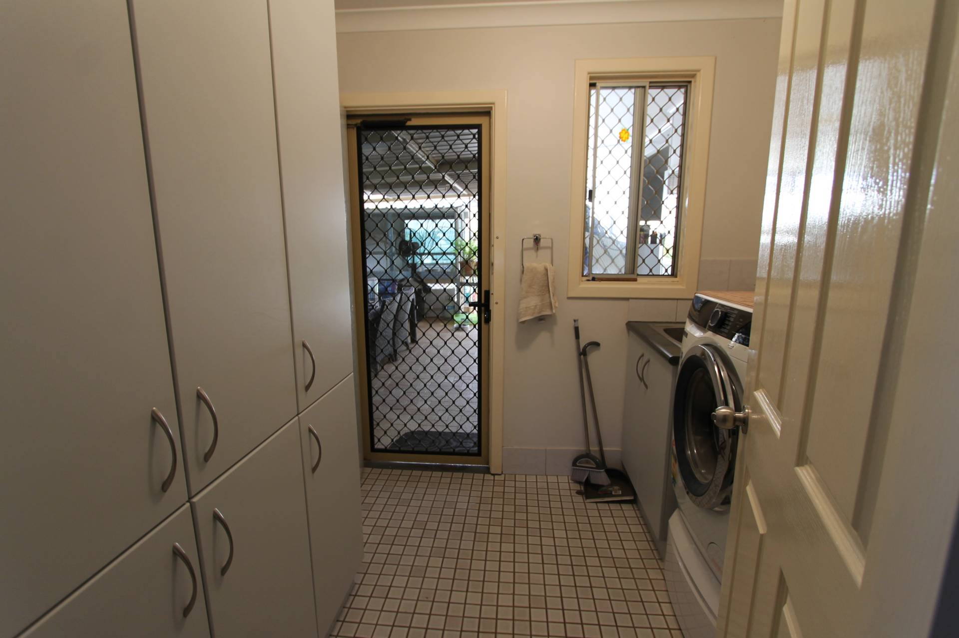 The main bathroom has a huge shower and vanity unit for storage. To the laundry room, you have a floor to ceiling linen cupboard and built in trough. Access to the rear patio is via the rear door which also includes a security screen to let the breeze in.