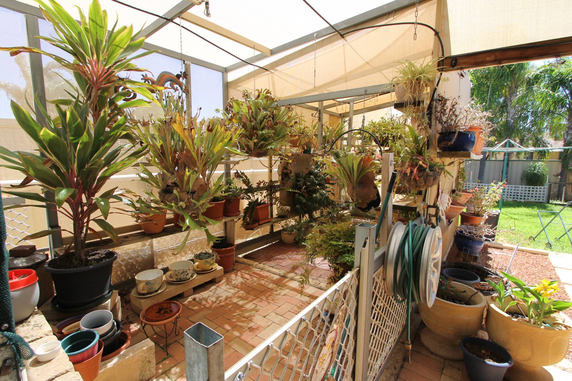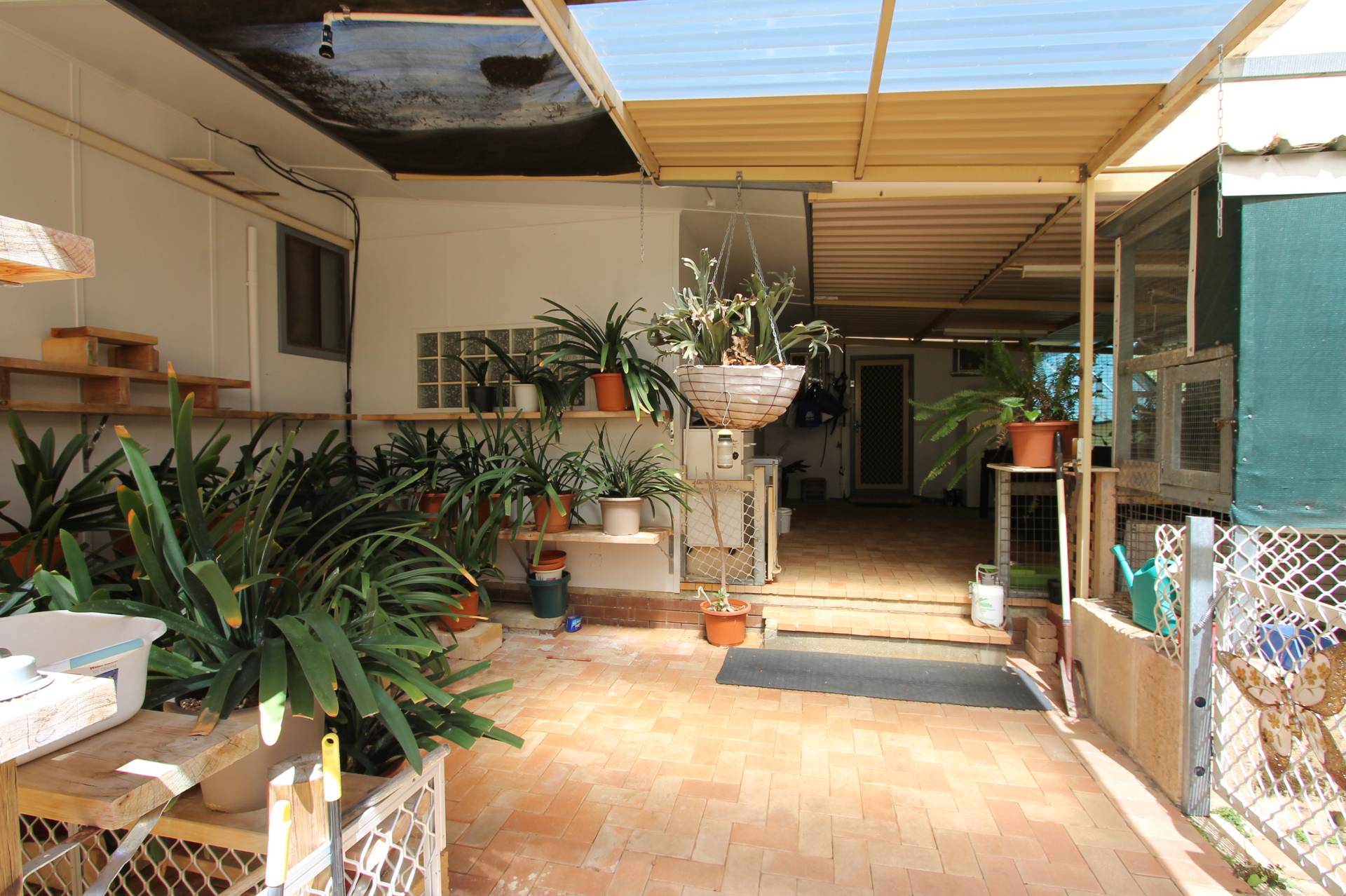 The rear patio is perfect for all year-round entertainment. It has been semi-enclosed to keep the weather out and your plants will love it too! A shade house has been established for the green thumb, plus you have a bird aviary AND a built-in cat run for your fur babies. An additional nook area (near the sliding door to the sunken lounge room) is currently being used for storage, but could be used for an additional sitting area OR a bar. Step down to an additional semi-enclosed area and you have floating shelves – perfect for plants, displaying your hobby OR ornaments (the choice is yours).