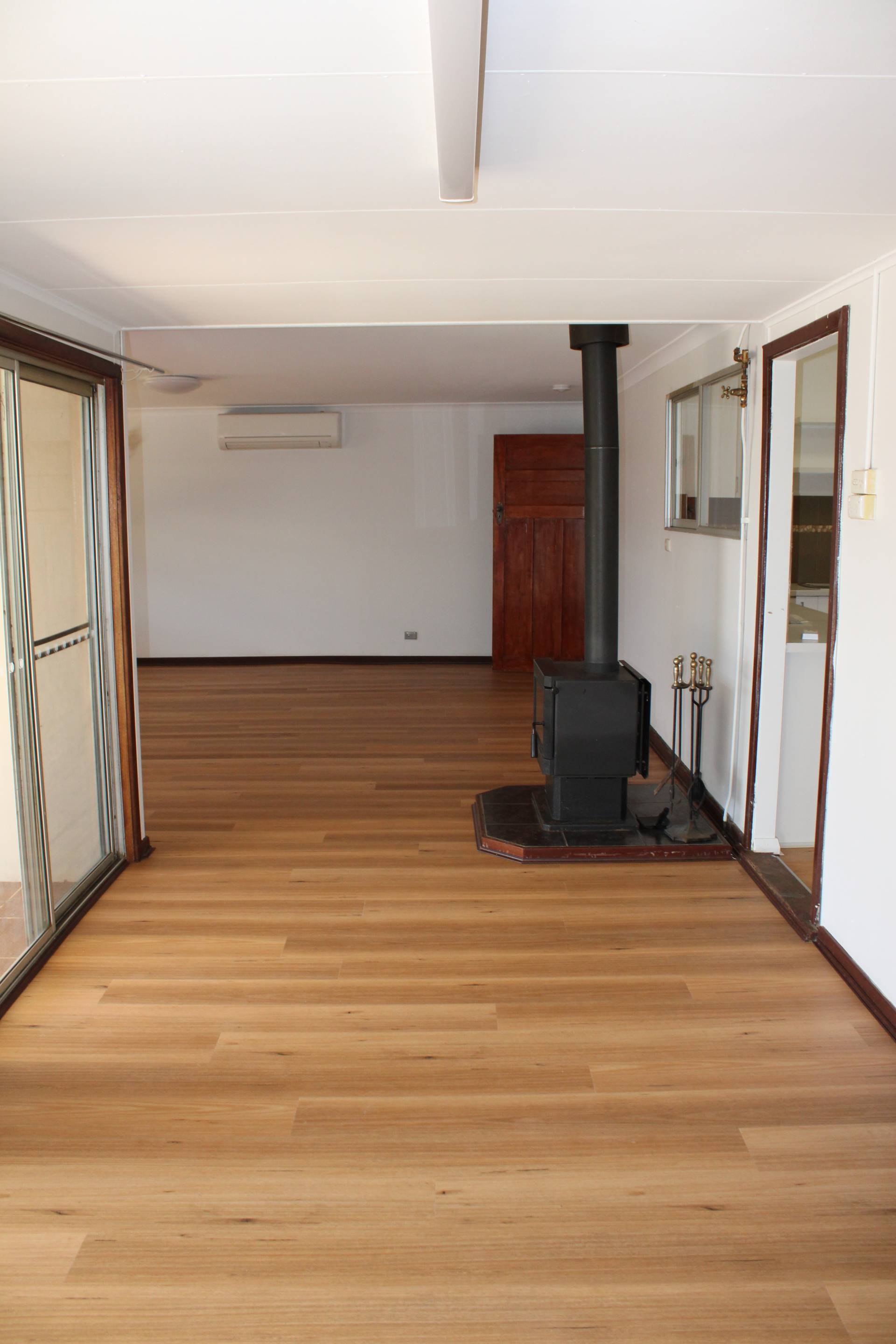Fresh carpet, flooring, gyprock, and paint enhance the home's appeal, while new split system air conditioners throughout and a wood fire provide year-round comfort.