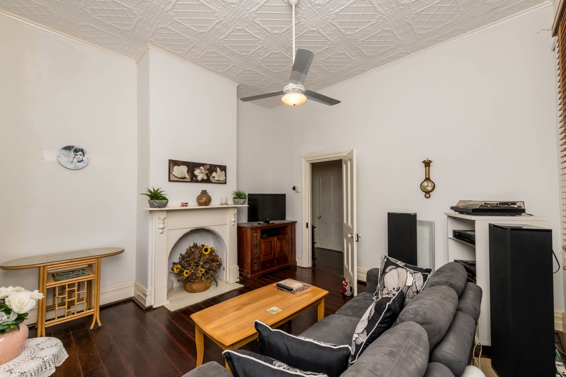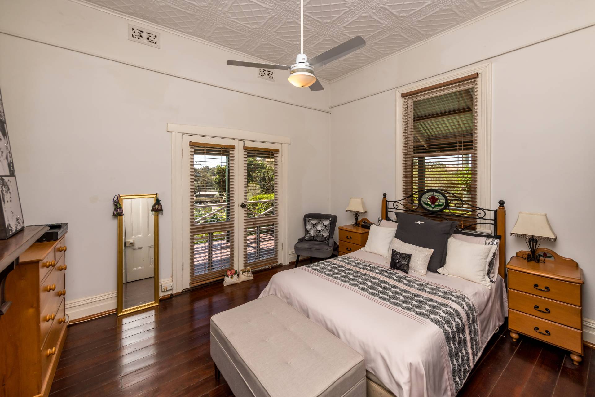 Upon entering, you're greeted by the timeless charm of a wide hallway adorned with pressed tin ceilings, leading to gracefully appointed bedrooms on either side. Both the master and second bedroom boast working fireplaces crowned with elegant timber mantelpieces. French doors in the master bedroom open onto the side verandah, offering a serene spot for your morning coffee.