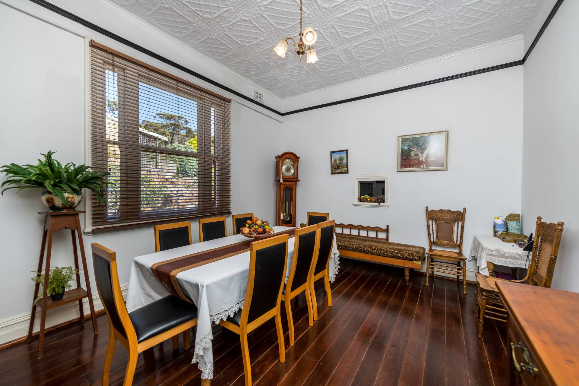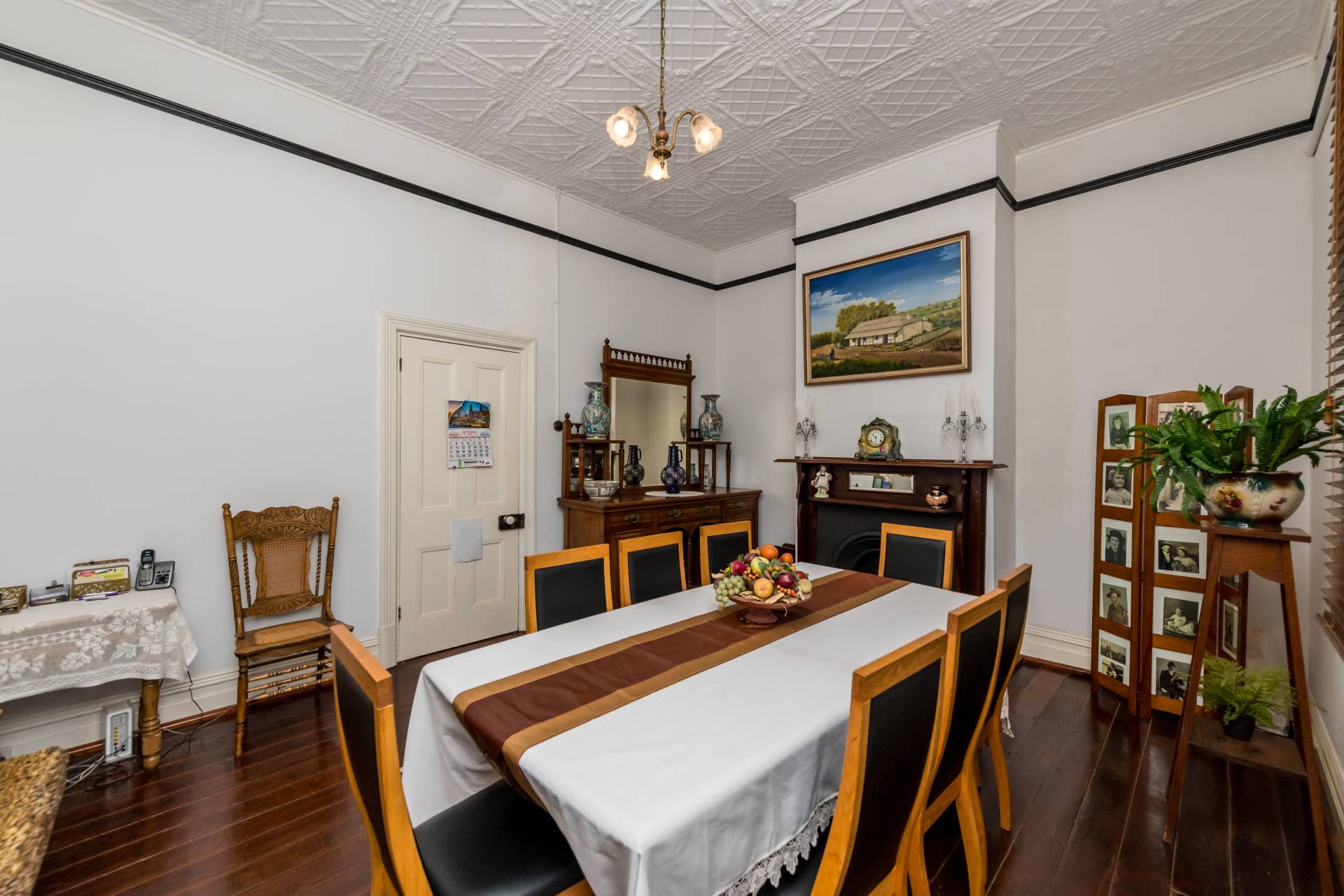The lounge and dining areas exude equal measures of grandeur, each adorned with their own working fireplaces, towering ornate pressed tin ceiling, and all the hallmark features expected of a property of this era. The lounge even grants access to the side verandah, seamlessly blending indoor-outdoor living.