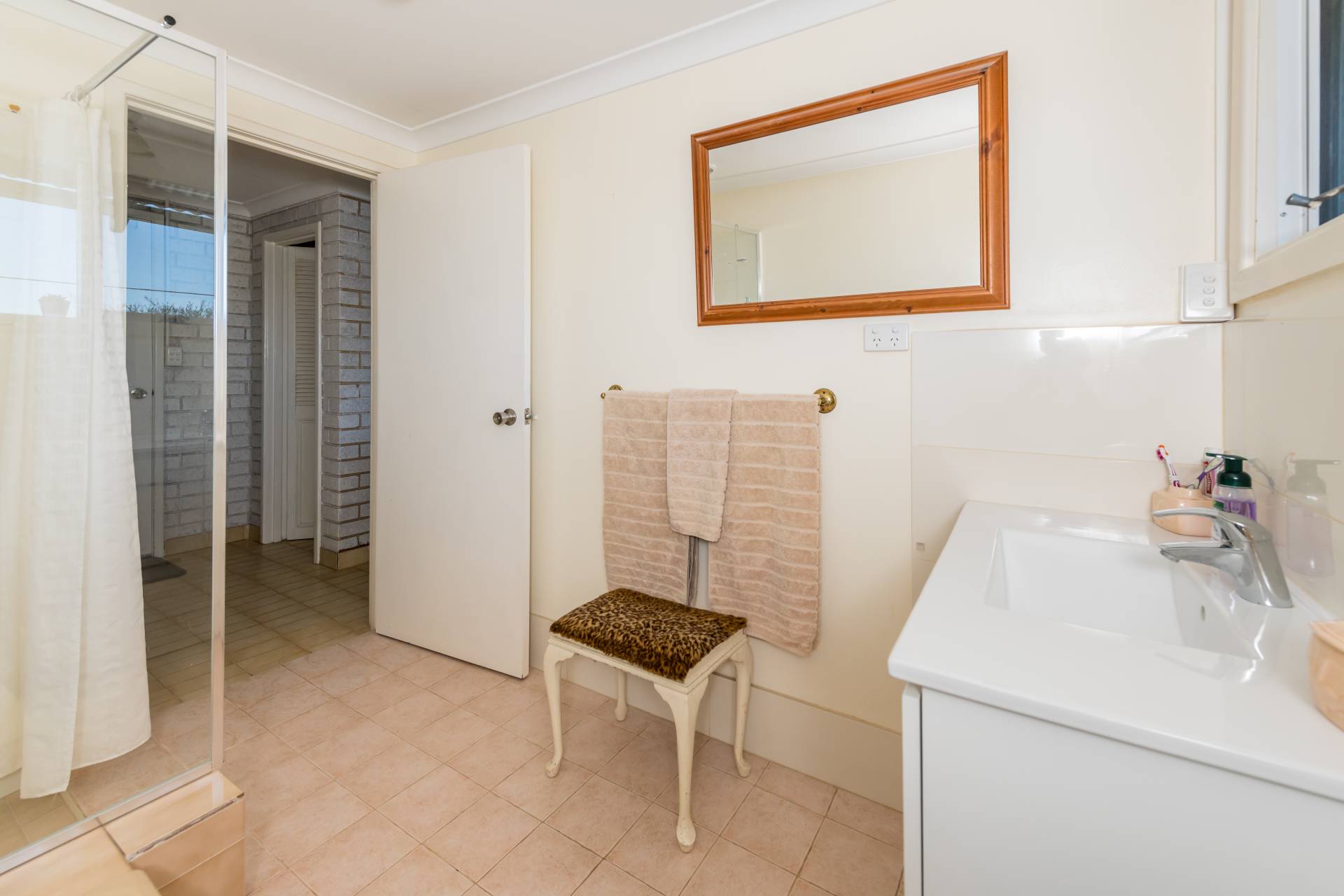 A contemporary extension at the rear of the property introduces a third bedroom, along with a laundry, bathroom, and separate toilet. Outside, a 6m x 6m powered shed with a concrete floor awaits, providing ample space for projects or storage.