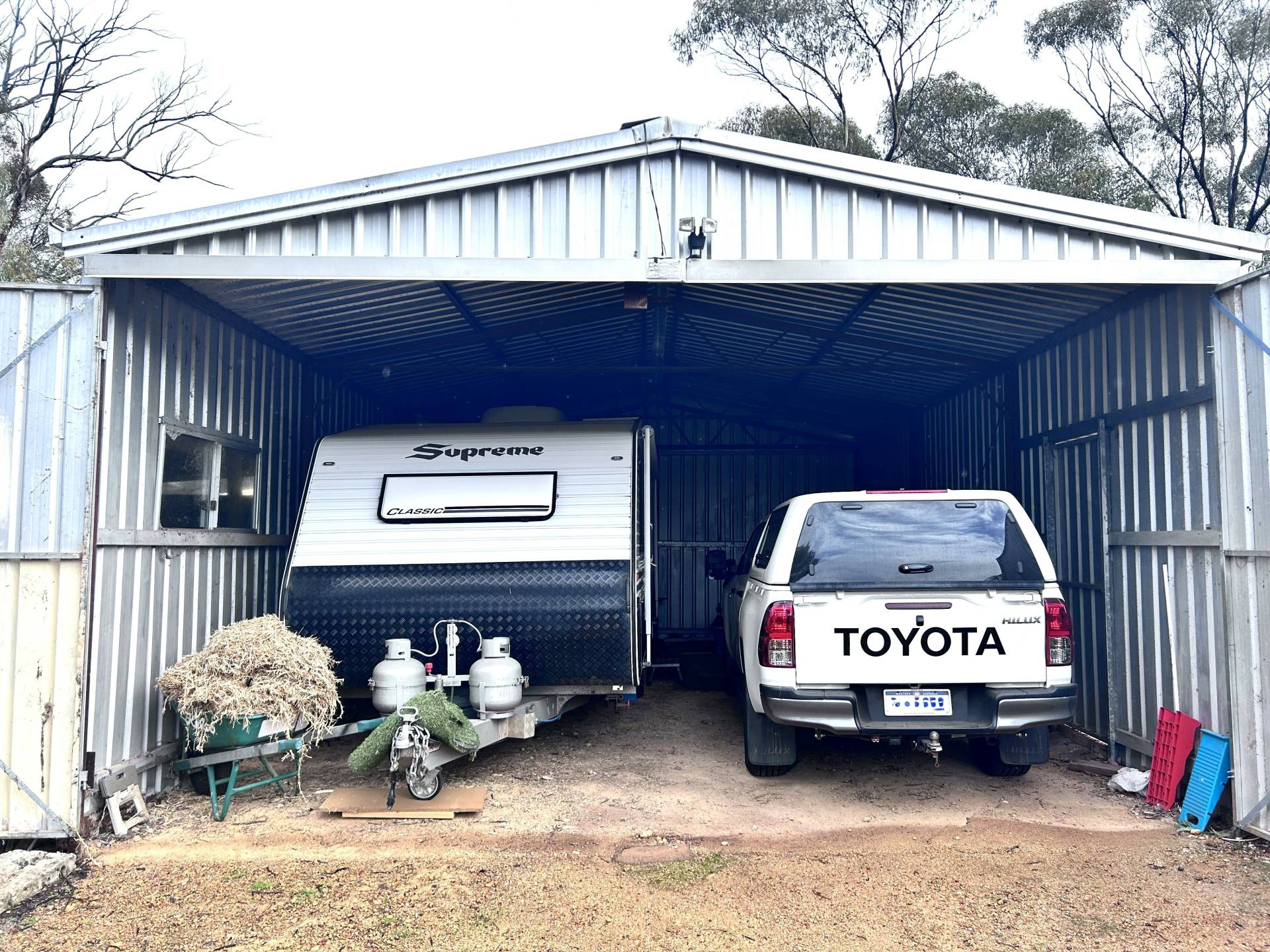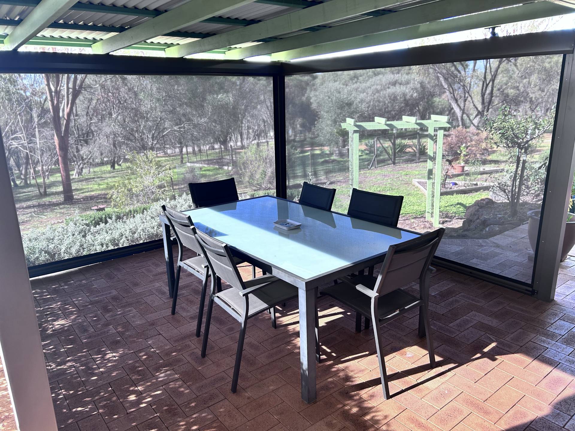 Outside, the wrap-around verandas and front patio provide ample space for relaxation and enjoyment of the beautifully landscaped. The property includes a double garage with two electric roller doors, power, concrete flooring, and an additional shed ideal for storing a caravan and an extra vehicle. The entire property is fully fenced and includes a fire break around the boundary for added safety.