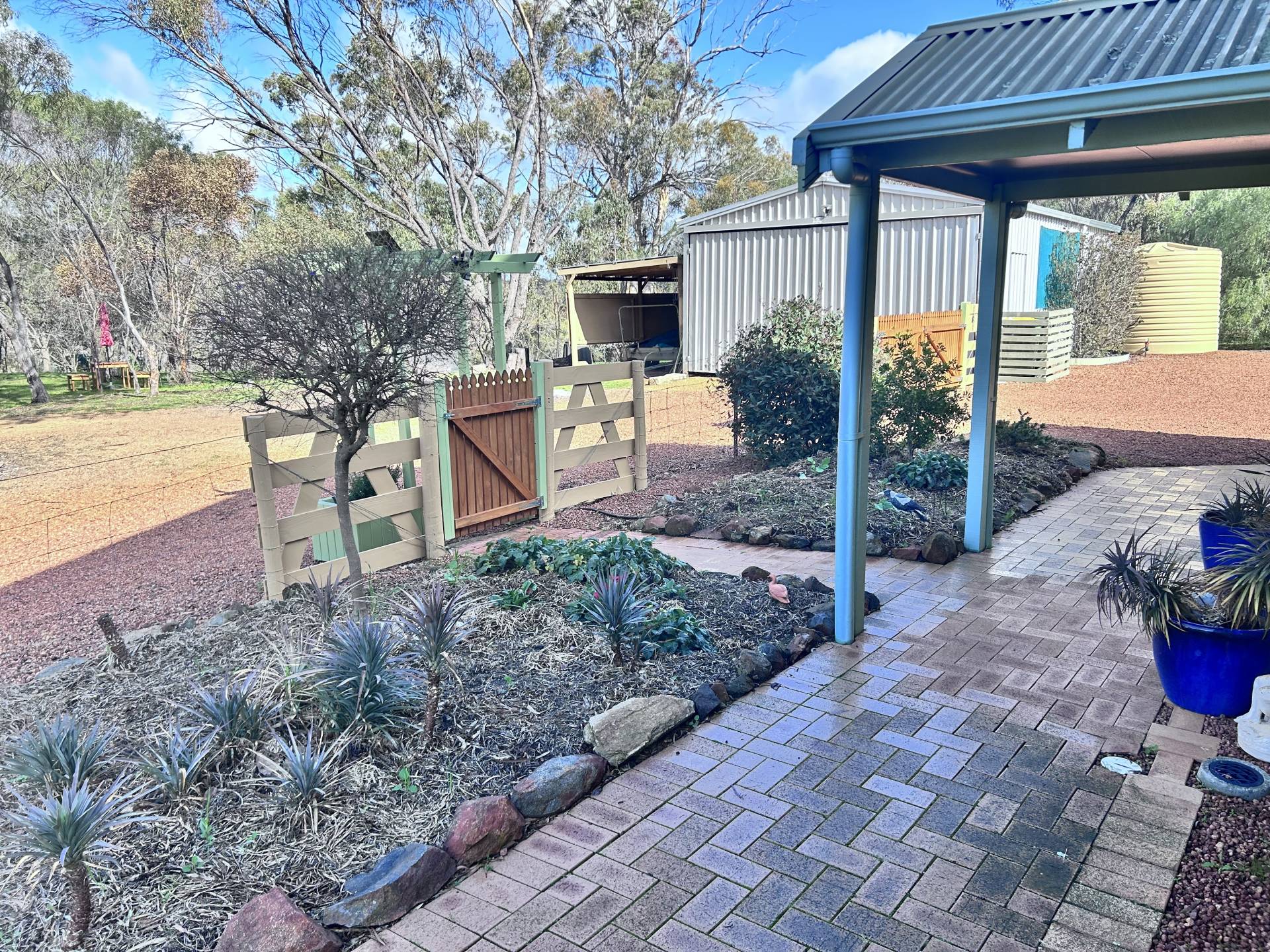 Discover this charming retreat situated at the end of a quiet cul-de-sac in Coondle. Set on 5 acres of beautifully maintained grounds, this property boasts lush gardens, fruit trees and vegetable patches, and various outdoor sitting areas, perfect for enjoying the tranquil surroundings.
