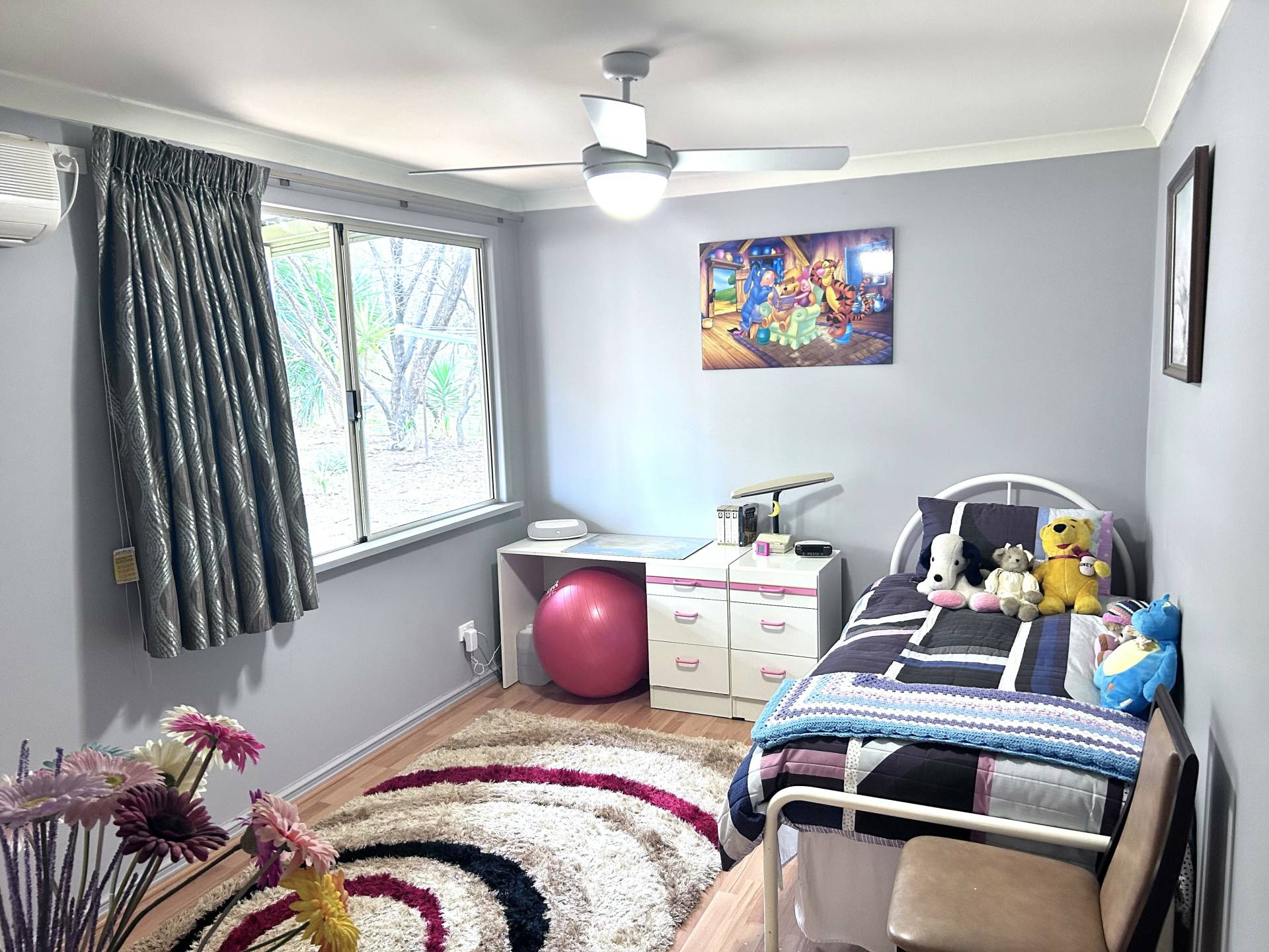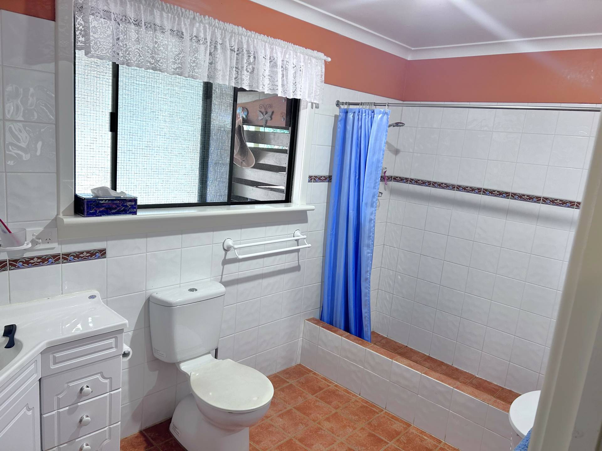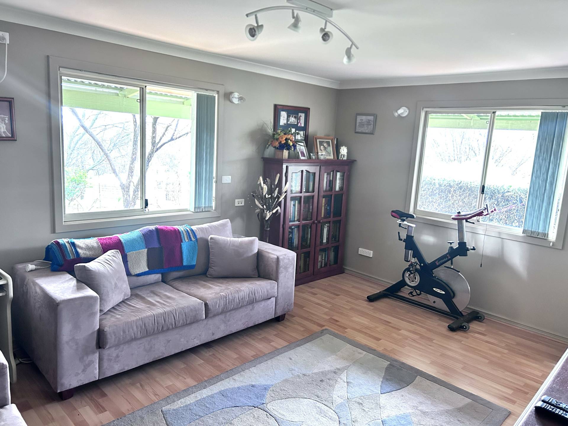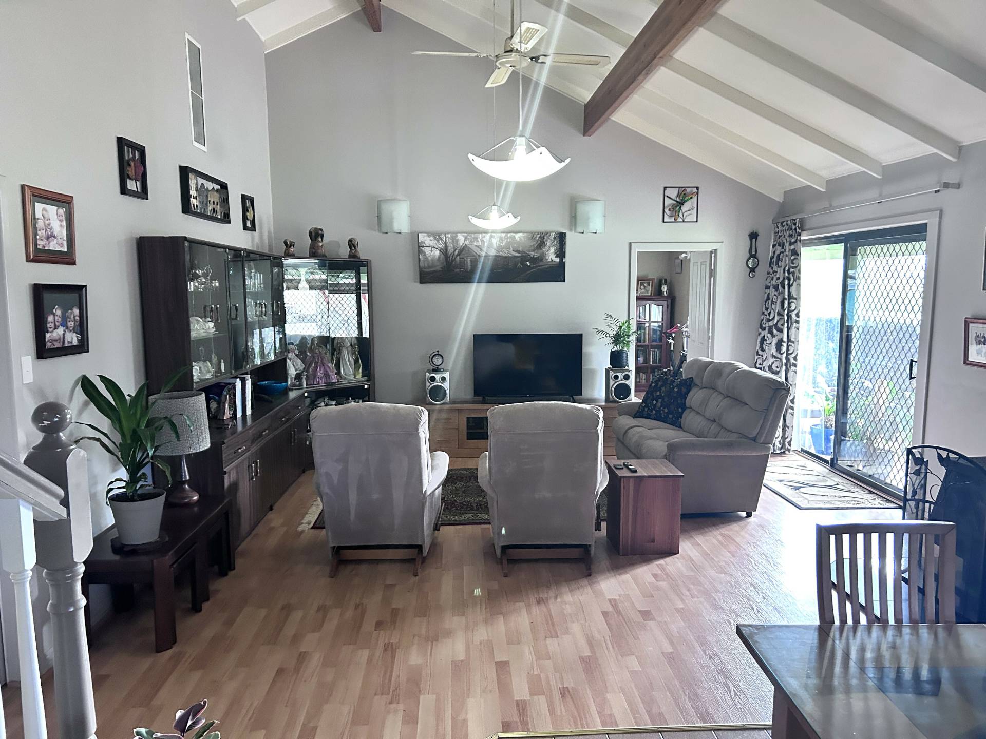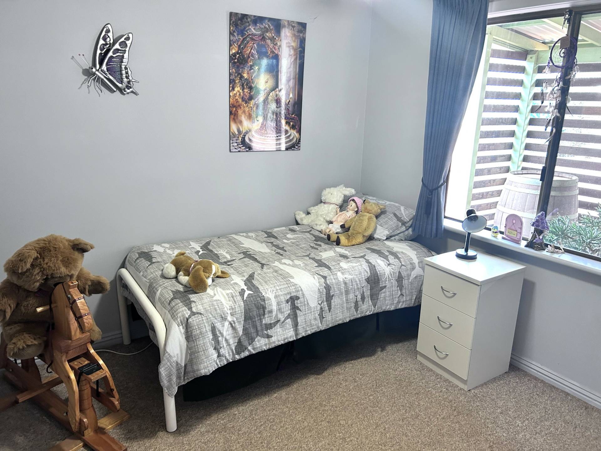 The house features four bedrooms, with three located on the ground floor and the main bedroom upstairs. There is one bathroom, complemented by an extra separate toilet for convenience. The spacious open-plan living area combines the kitchen, dining, and living spaces. It is highlighted by a wood burner fireplace, high-raked ceilings, and split system air conditioning, ensuring comfort throughout the year. Additionally, evaporative cooling provides extra relief during the warmer months.