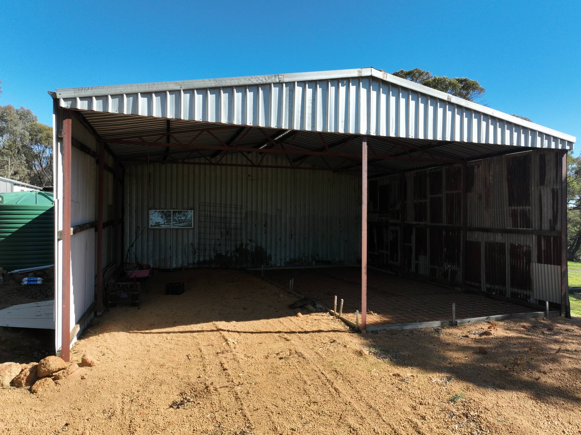 The property is well-equipped for farming, with an enclosed workshop featuring a concrete floor and power connected, and a large hay shed attached to the rear of the workshop. The hayshed floor could easily be concreted to double the size of the existing workshop. The farm is thoughtfully divided into six paddocks, each with shade trees and water troughs for the stock. Two paddocks are suitable for cropping and hay production and have had superphosphate applied in recent years. The remaining four are ideal for running animals, with sheep currently on the property.