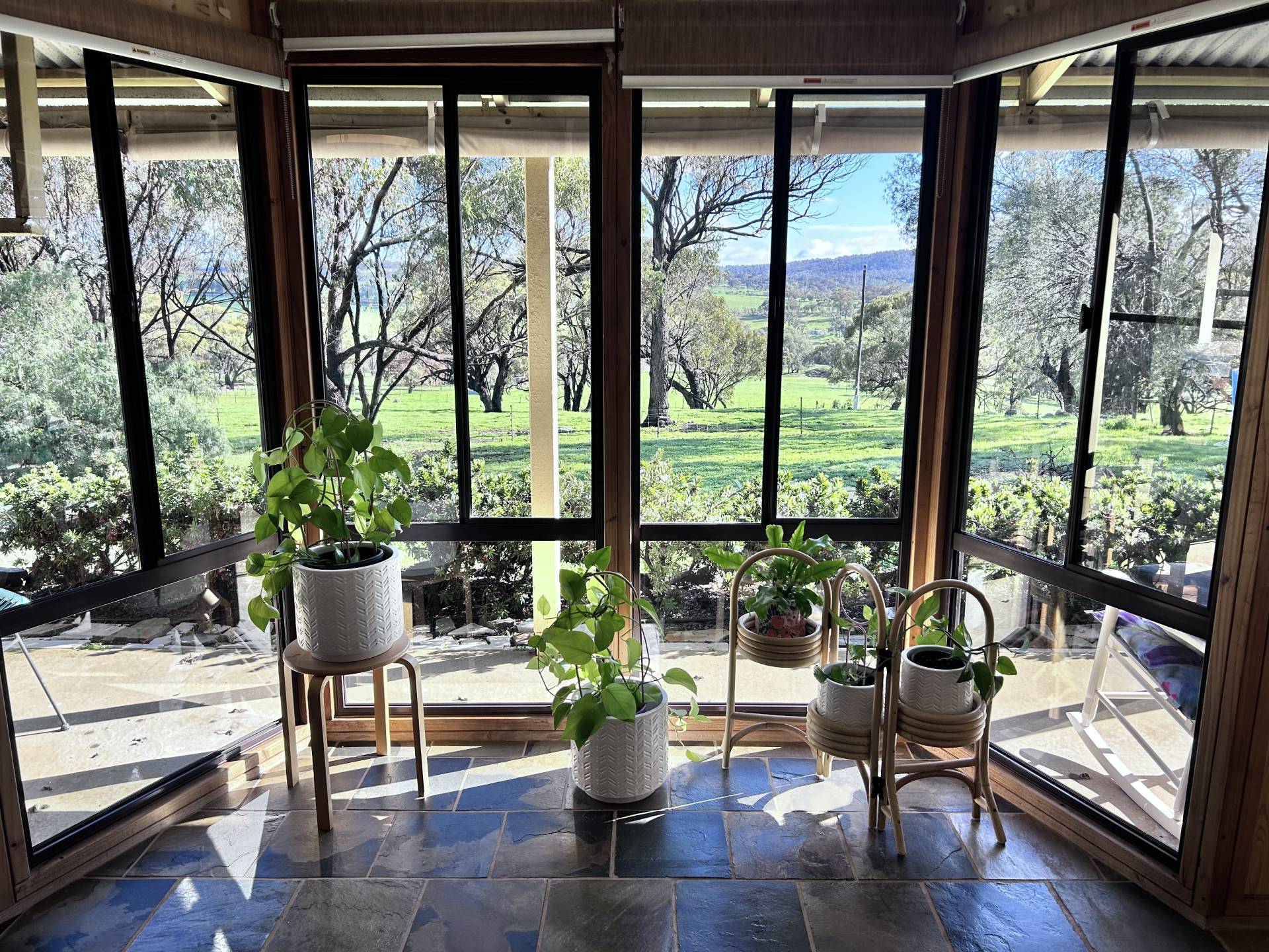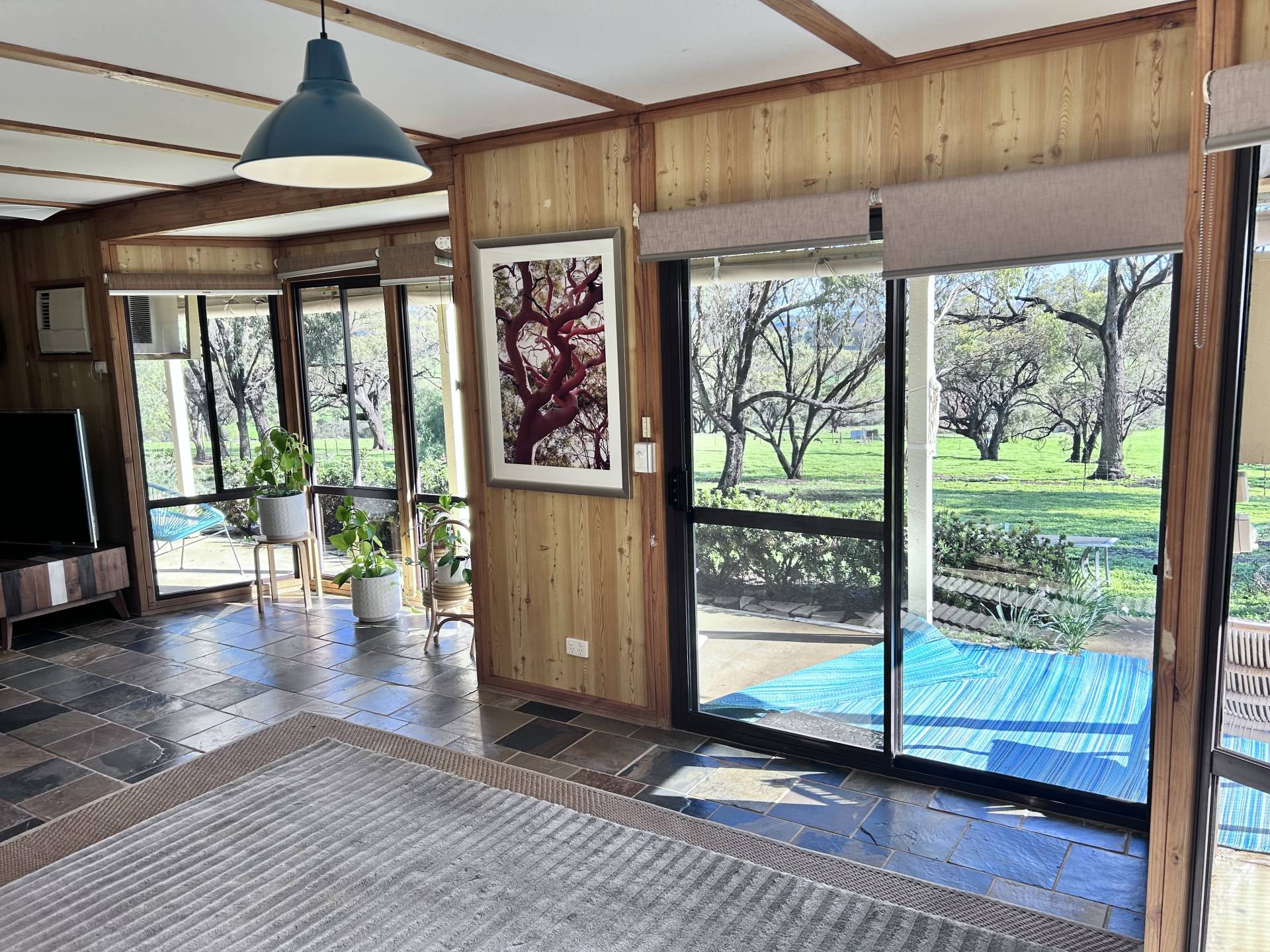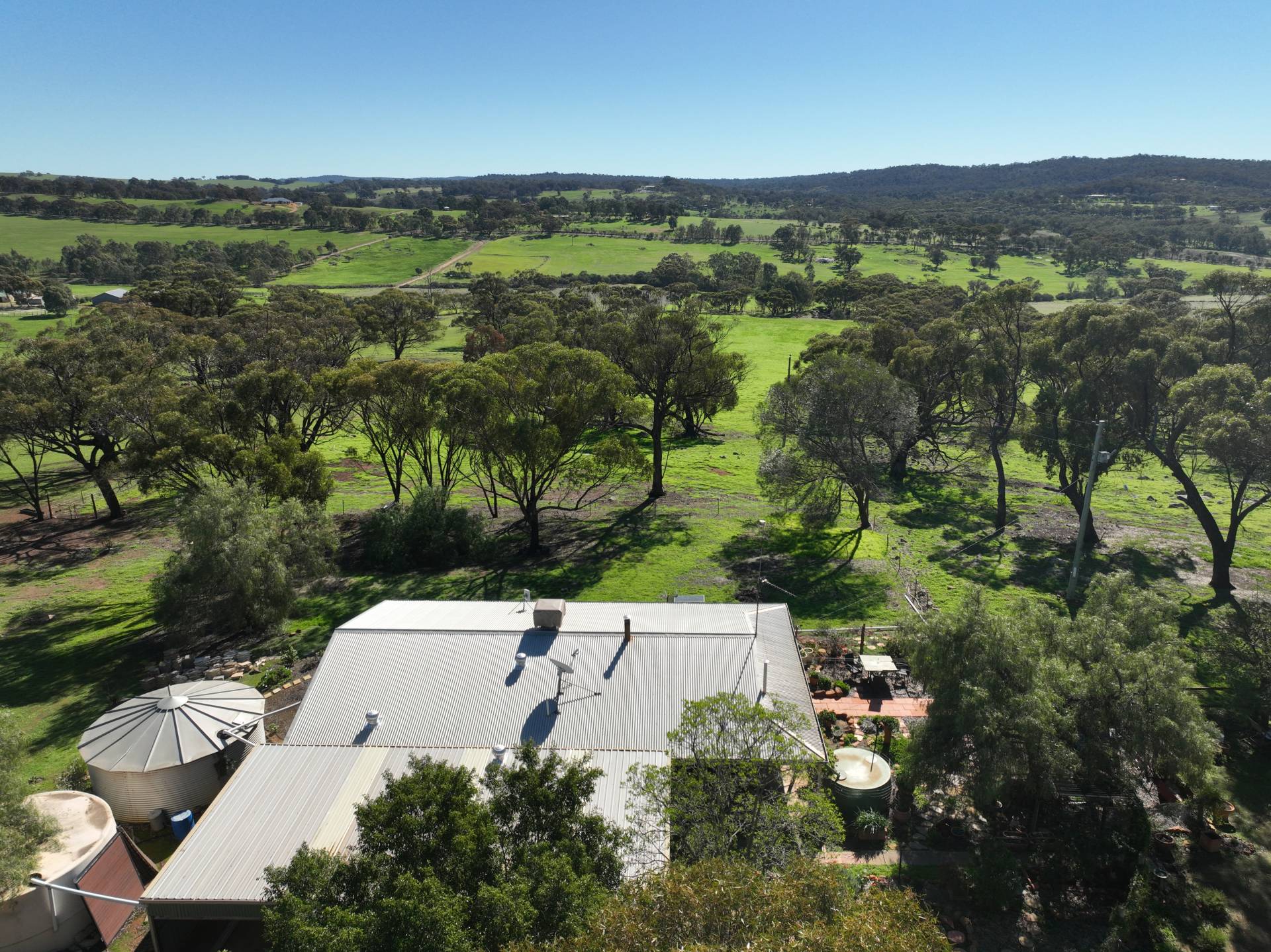 Nestled on 50 acres of Toodyay's finest red loam soils, this secluded and private property offers a unique blend of comfortable living and efficient farming. The charming 3-bedroom, 1-bathroom cedar-clad home is perfectly positioned at the back of the property, providing panoramic views of the entire farm. As you enter the home, you're welcomed by the open-plan living and dining area, featuring generous windows that flood the space with natural light and offer stunning views overlooking the property. The tidy kitchen is well-appointed also with generous windows and a good-sized pantry.