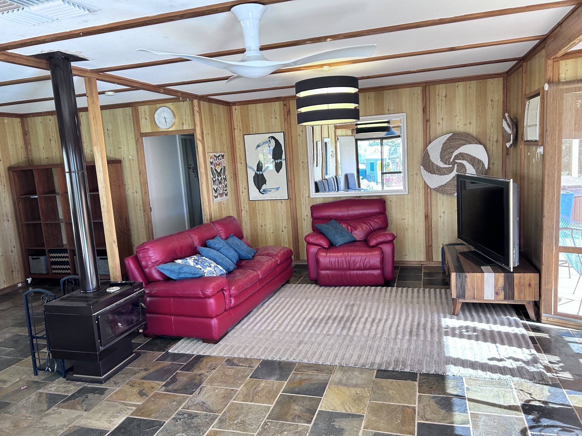 Heating and cooling are provided by a central wood burner fireplace, ducted evaporative cooling, individual reverse cycle units, and a ceiling fan. The master bedroom is a generous size with built in robes, offering a peaceful retreat with a beautiful outlook. The two additional bedrooms are conveniently located down the hall, along with the bathroom and laundry facilities.
