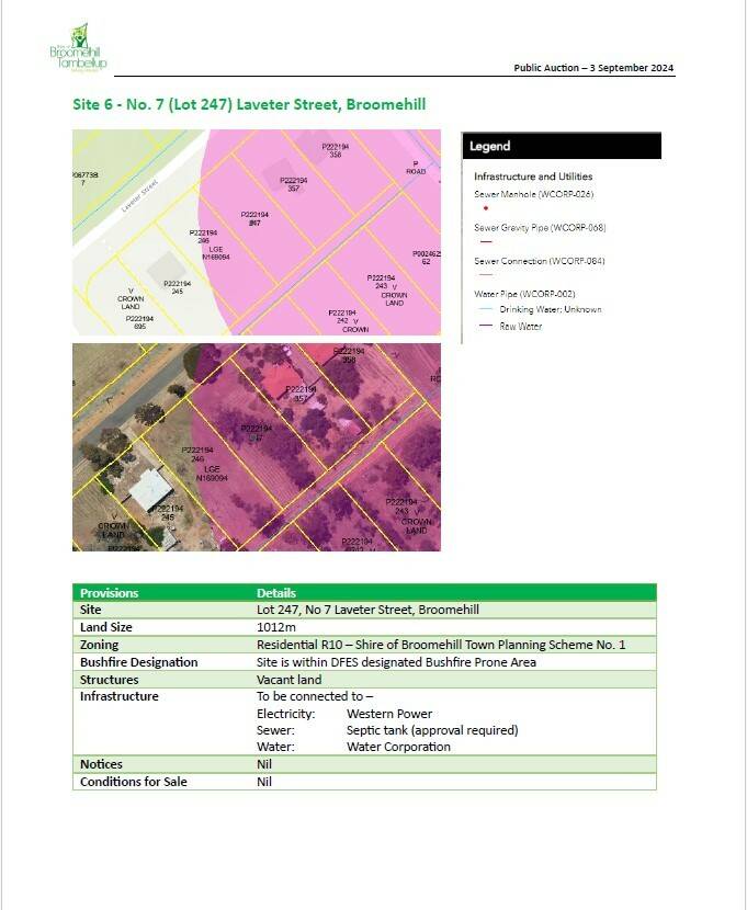 AUCTION OF LAND ON BELHALF OF SHIRE OF BROOMEHILL - TAMBELLUP