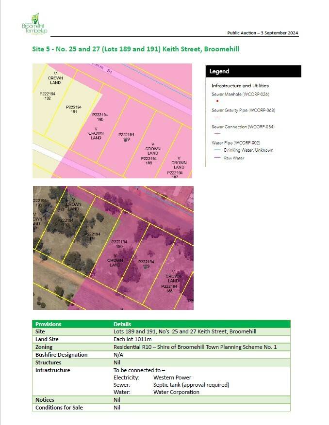AUCTION OF LAND ON BELHALF OF SHIRE OF BROOMEHILL - TAMBELLUP