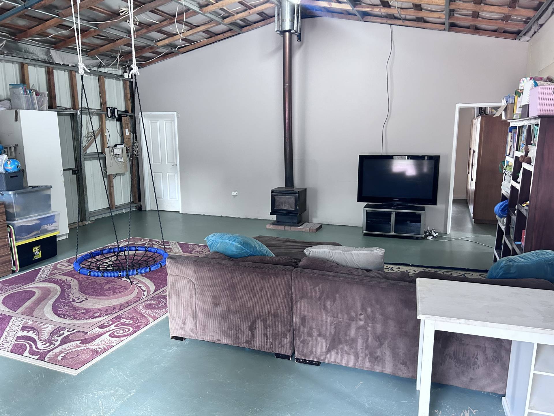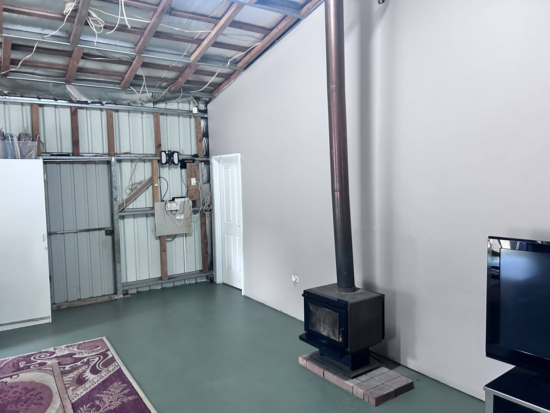 The 3-bedroom, 1-bathroom house is fully insulated, built on a concrete slab, and comes with a single carport. Inside, you’ll find a decent-sized living room with a wood burner fireplace. The three bedrooms, bathroom, and kitchen are all located off the main living area, with the kitchen and dining space situated together. There's also a separate laundry area with outdoor access.
