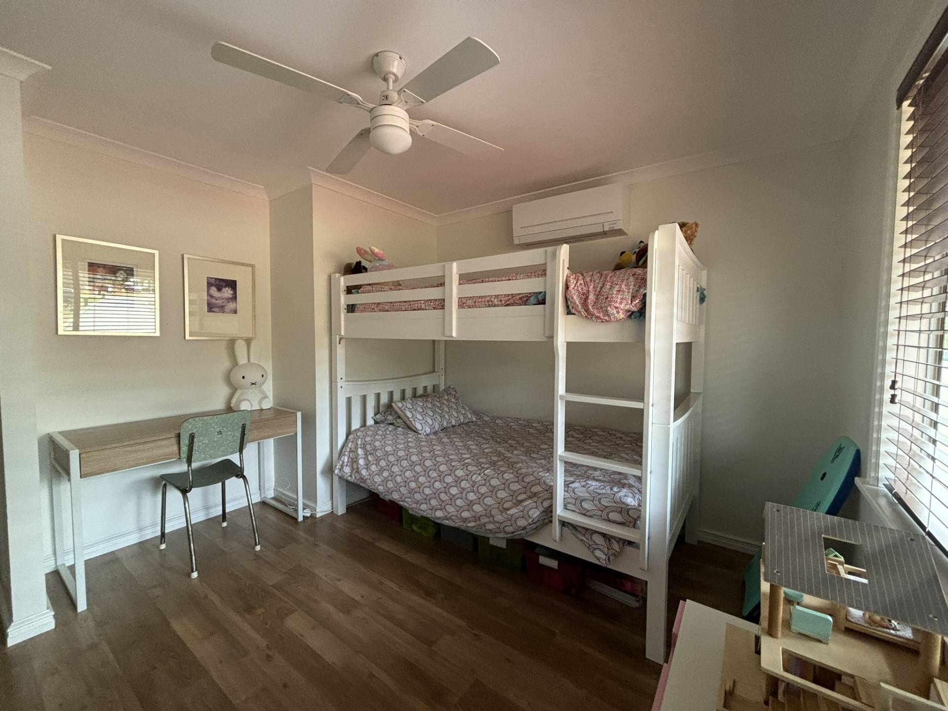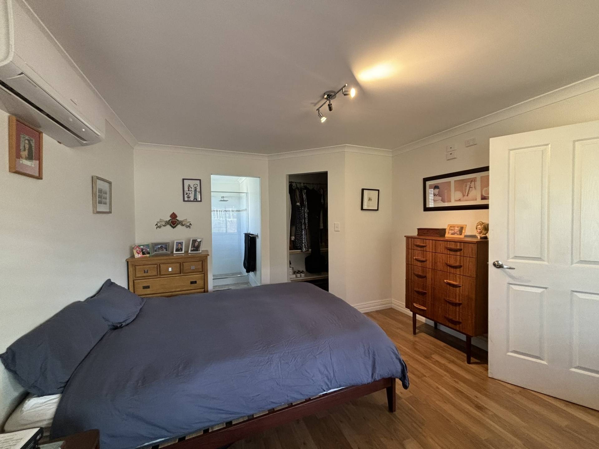 The master suite is a true retreat, boasting a walk-in robe, a lovely ensuite, and enough space for a king-sized bed. The two minor bedrooms are generously sized, with handy wardrobe nooks and storage areas. The second bathroom features a stylish shower-over-bath setup.