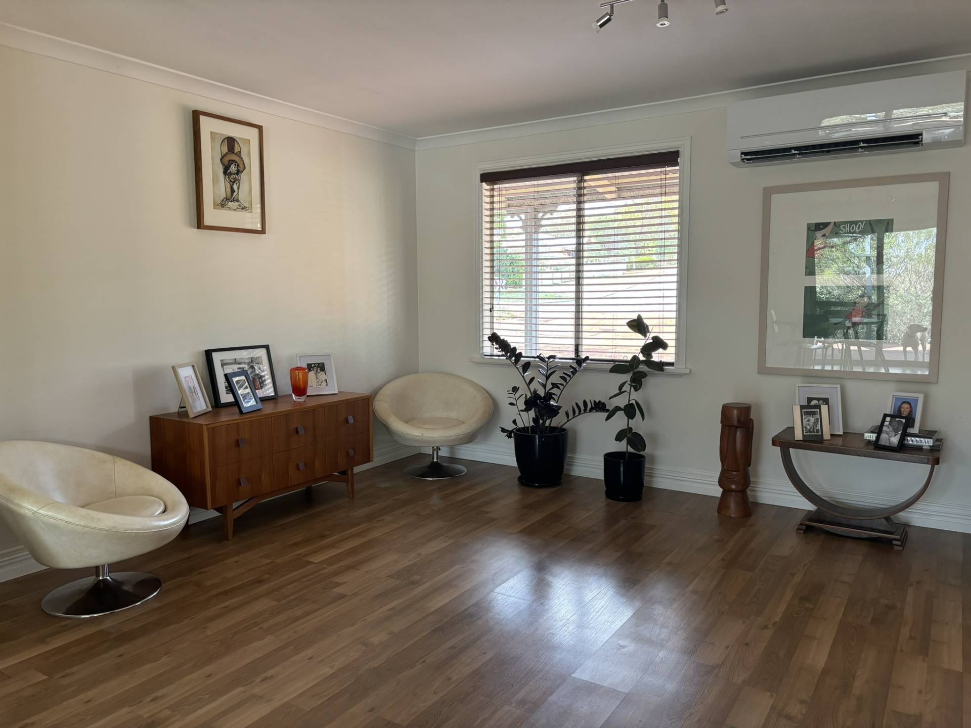 Step into a spacious, open-plan living area with a cozy fireplace and air conditioning, ensuring comfort all year round. The modern kitchen is a chef's dream, featuring a large pantry, plenty of room to move, and a convenient breakfast bar and beautiful views from the kitchen window!