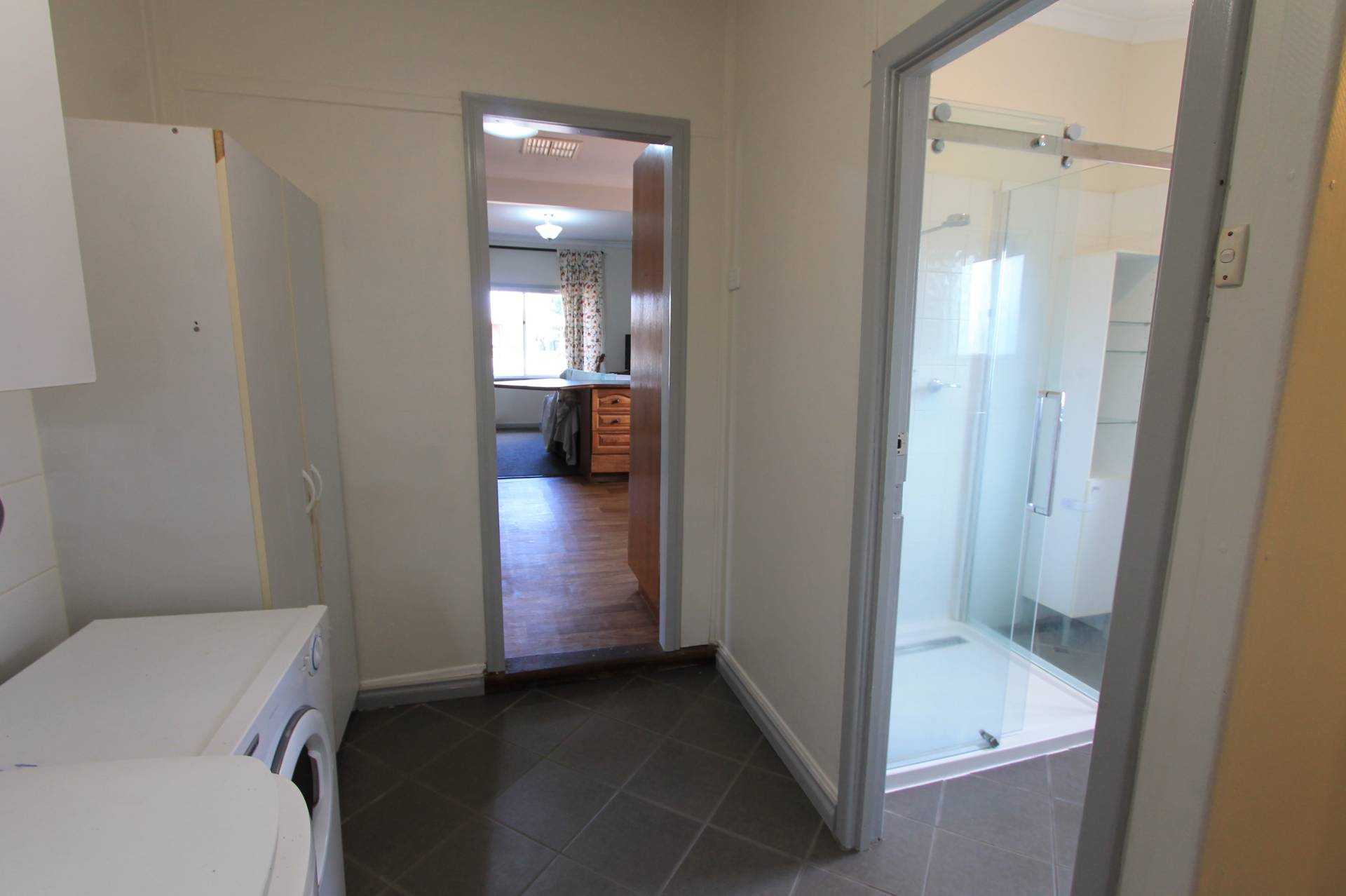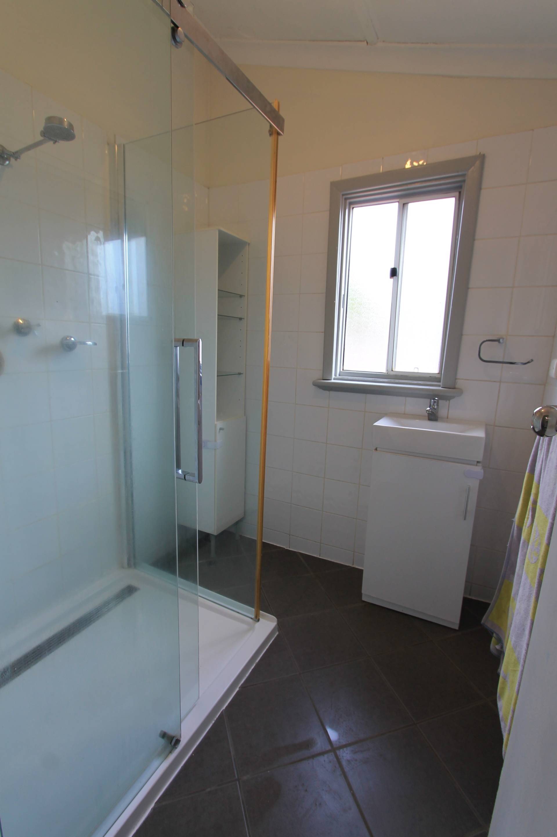 Your functional bathroom has a large corner shower, vanity with storage plus an additional storage cupboard. The separate toilet is located off the laundry area.