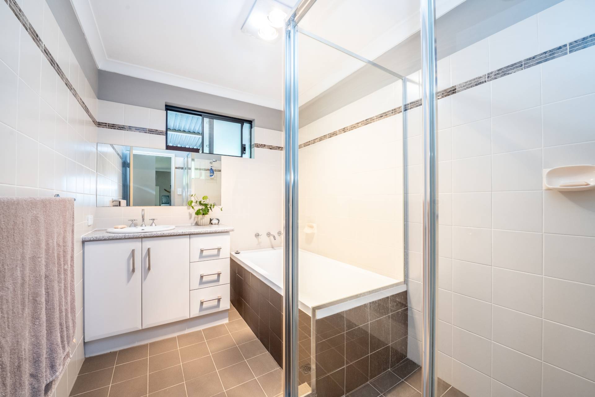 The master bedroom is generously sized and featuring a walk-in robe for plenty of storage. The ensuite is well-appointed with a shower, vanity, and toilet, offering privacy and comfort. The two minor bedrooms, both with built-in robes, are perfect for family members or guests. The main bathroom is equally impressive, offering a vanity, bathtub, and shower.
