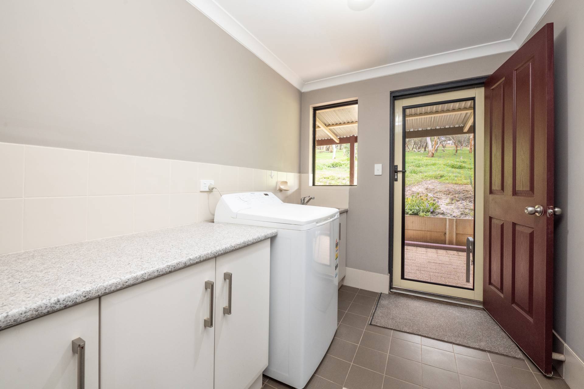 The property also includes a well-equipped laundry room, complete with outdoor access, ample workspace, and a separate toilet, ensuring convenience and practicality. With rainwater storage on site, the home is well-prepared for sustainable living, while the addition of solar panels help with the power bills.