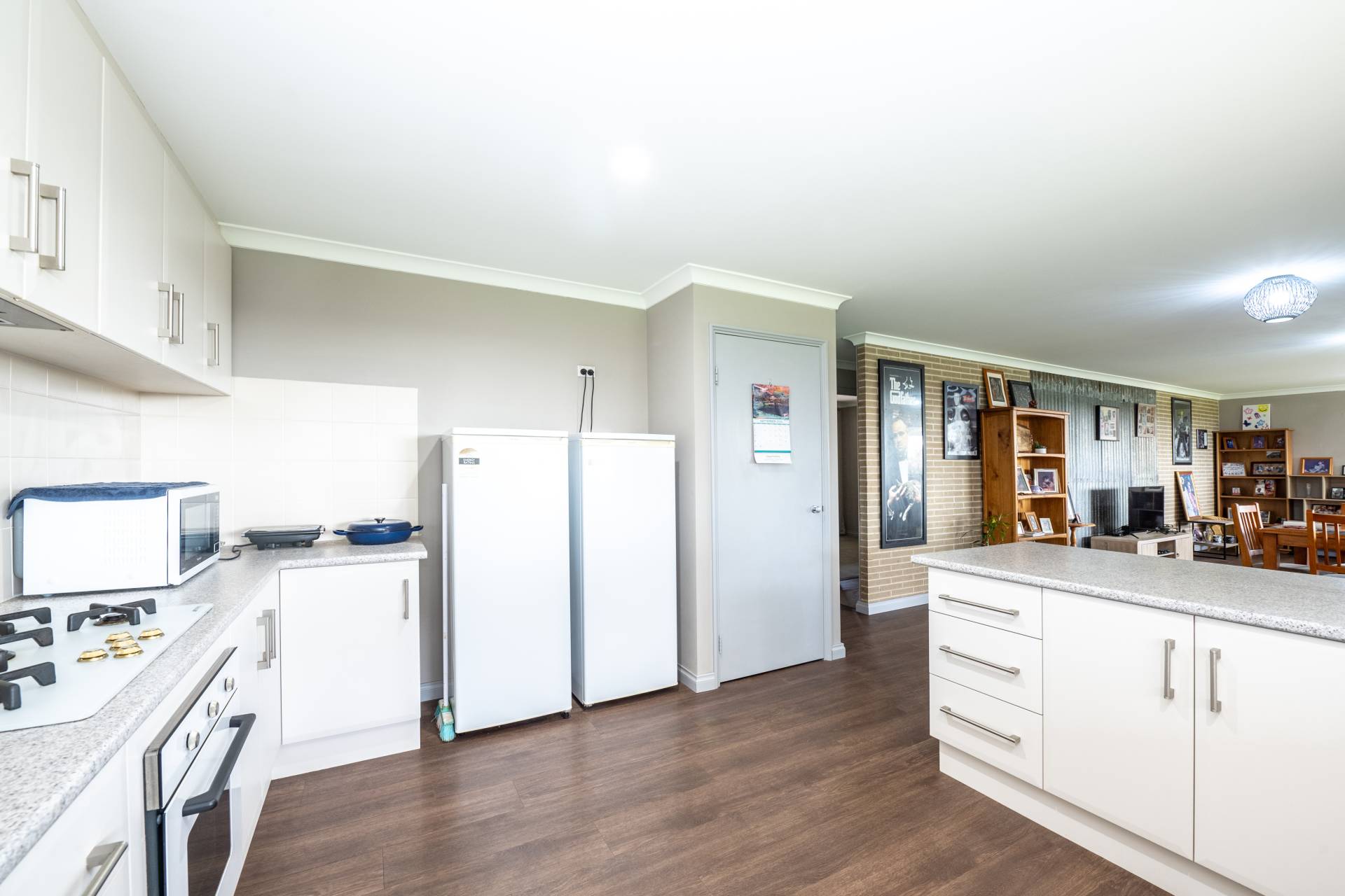 The modern kitchen is thoughtfully designed with ample bench space, a breakfast bar, and generous cupboard storage, allowing for easy meal preparation and entertaining. A walk-in pantry adds extra convenience, while the electric oven and gas cooktop provide all the modern appliances needed to create delicious meals for family and friends.