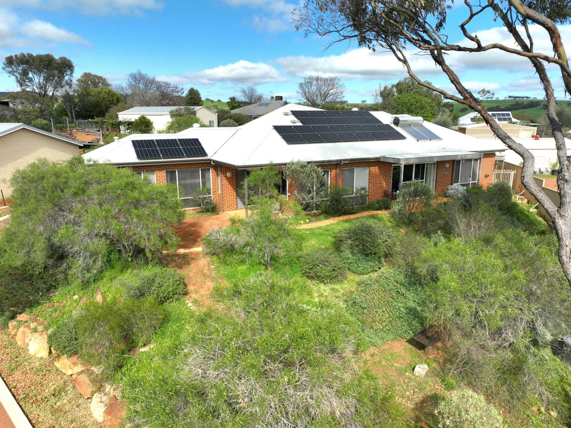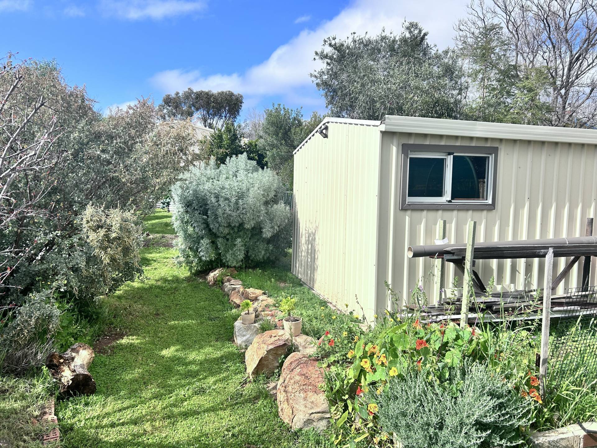 A cleverly designed laundry area features a timber benchtop, overhead cupboards, and a double linen press, ensuring ample storage space. Off the laundry is a powder room with a second toilet. Sustainable living is well-catered for, with 5kW solar panels, a solar hot water system, and two split-system air conditioning units ensuring the home remains comfortable year-round. This thoughtfully designed home, surrounded by beautiful natural scenery, offers a peaceful lifestyle while still being close to the convenience of Toodyay town. Whether you're looking for a family home, a rural retreat, or a property with potential, this home ticks all the boxes.