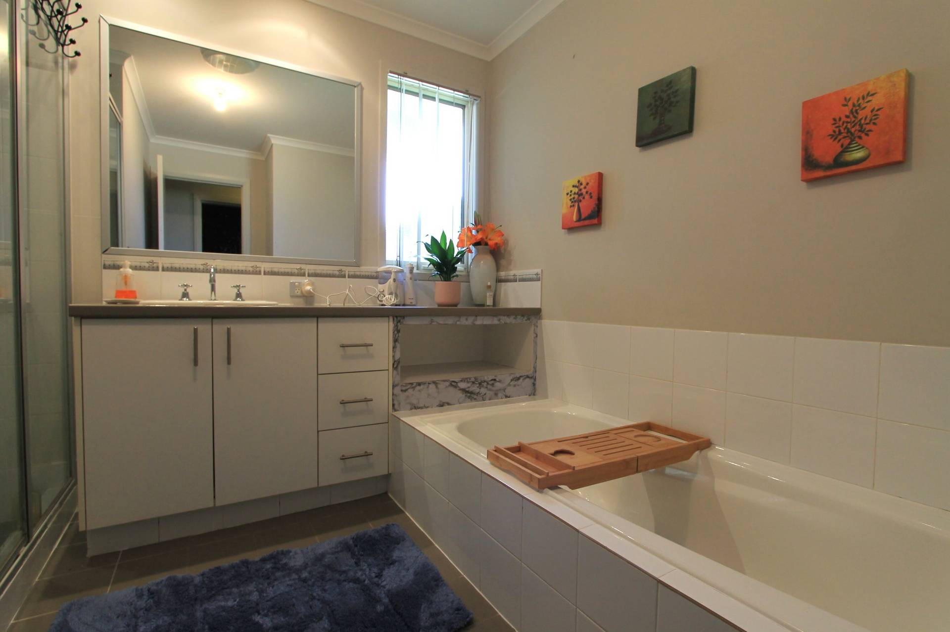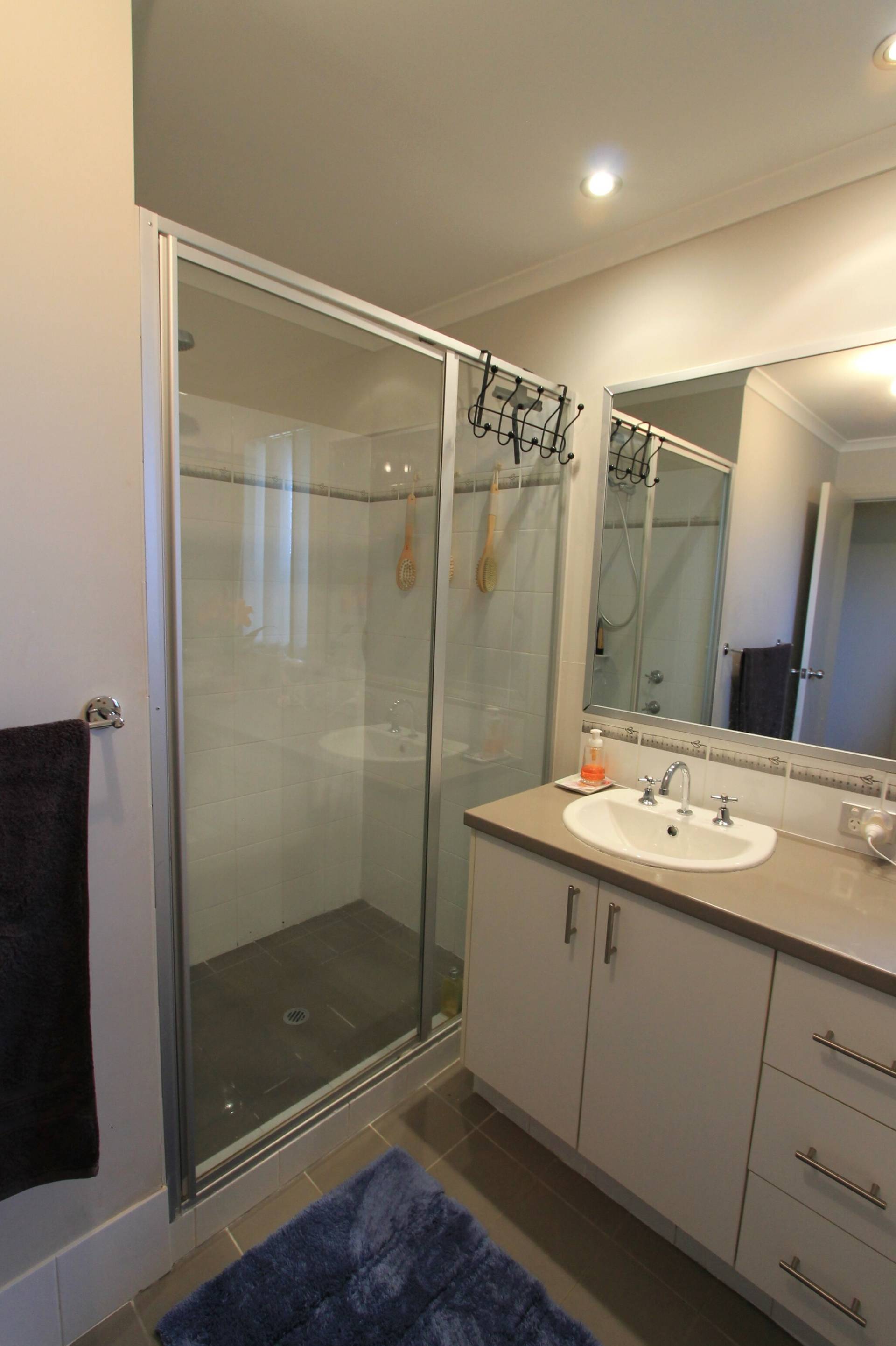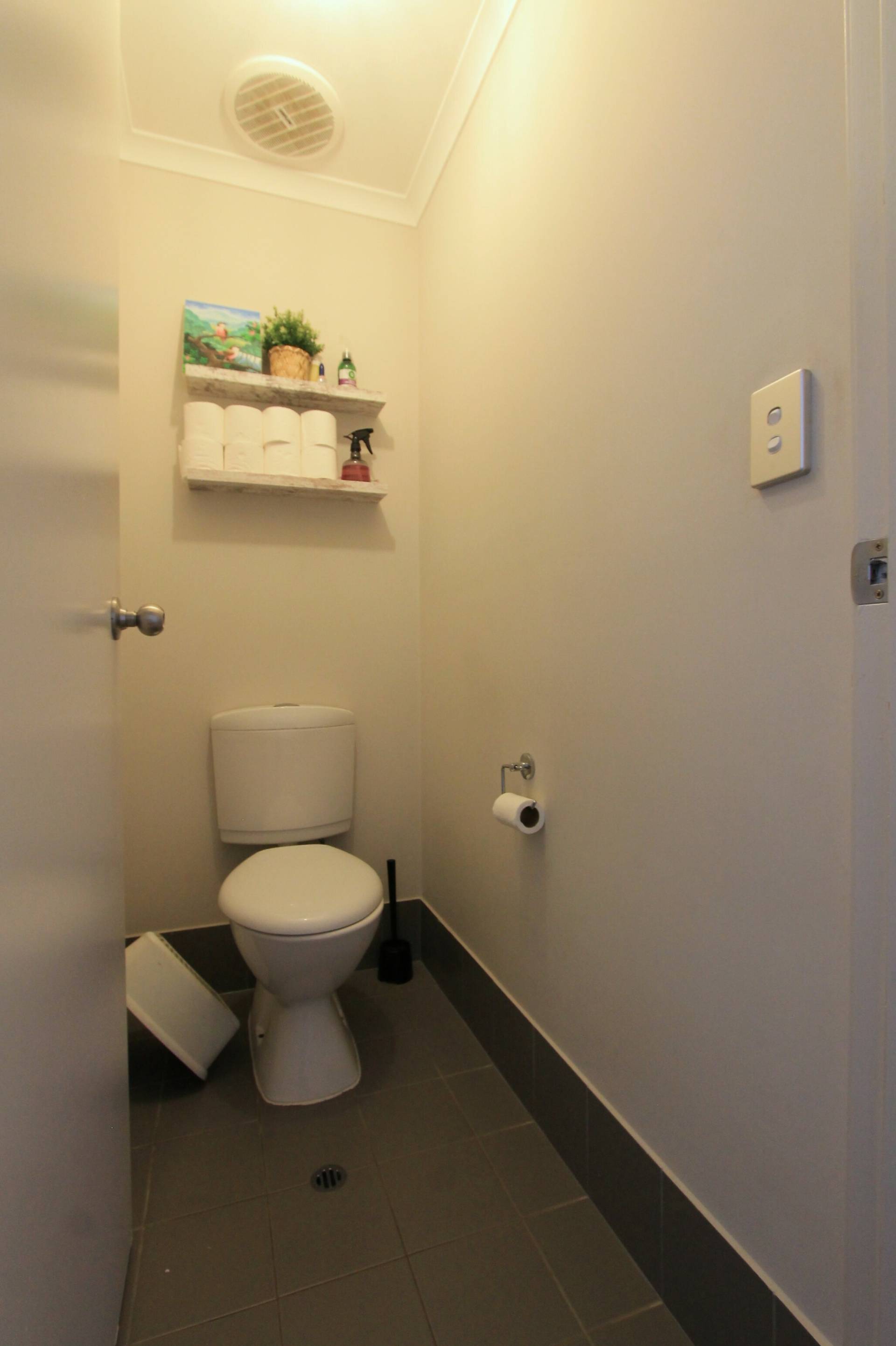 Your main bathroom is modern and practical with the ideal set up – the bath is separate to your shower! The vanity is full of storage options with cupboards, drawers and a nook to store towels or toiletries. The separate toilet is located off the hallway, as well as a large double cupboard for your linen.