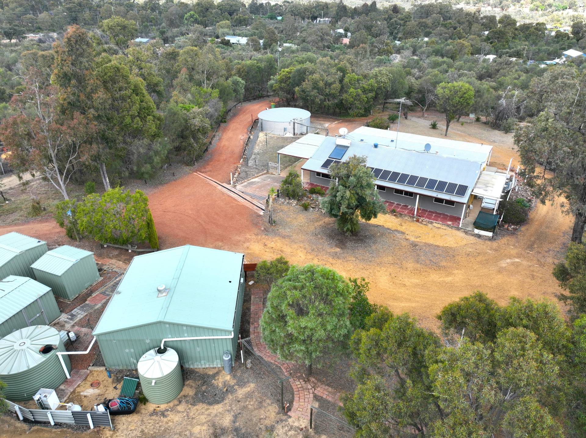 Located just 10 minutes from Toodyay’s town centre and conveniently on the Perth side, this 3-acre bush property offers a tranquil, nature-filled setting with native trees, shrubs, and wildflowers. The 3x2 house sits privately toward the back of the block, with gated entry and a winding driveway that leads to the house, garage, and garden sheds, plus ample parking and a carport alongside the house.