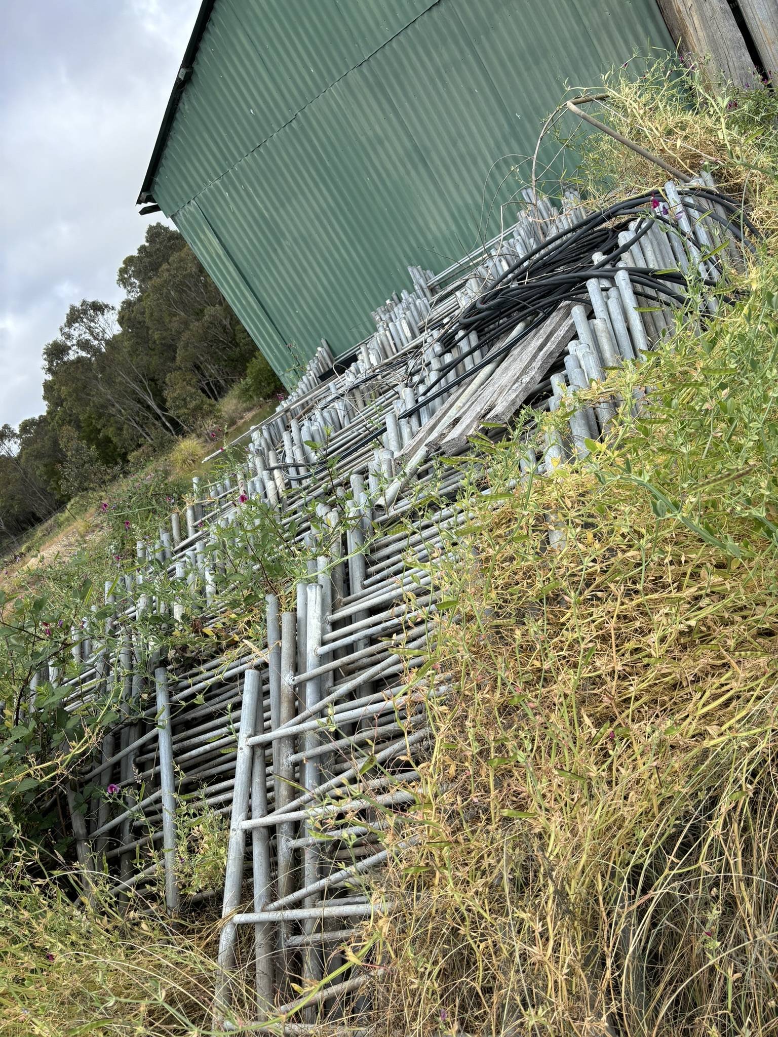 There are various old wells and underground tunnels in the sheds that are a safety hazard.