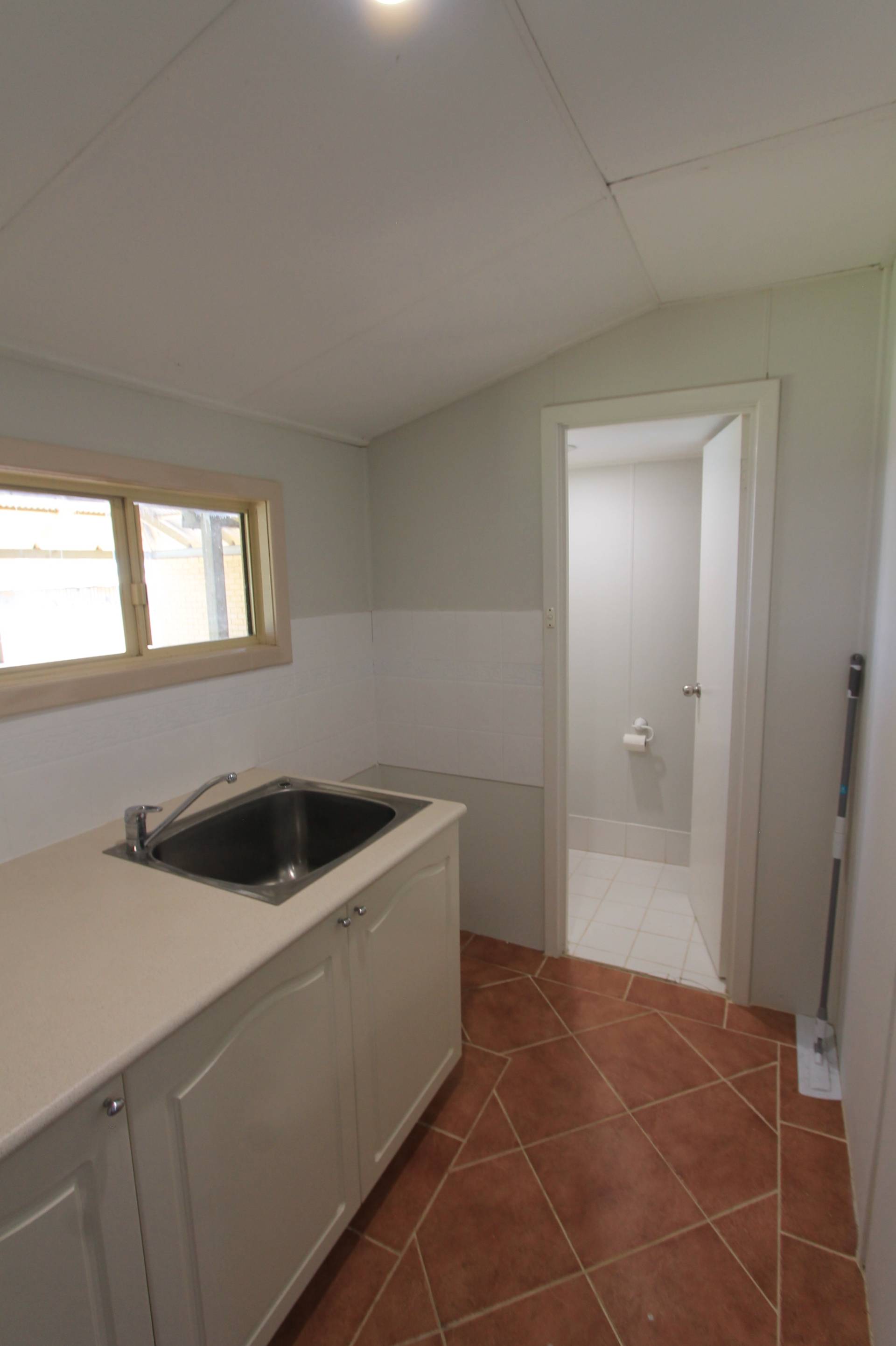 Your laundry has a built-in bench & trough with additional cupboard space for your storage needs, plus a space which would fit either your front loader or top loader. Off here is your separate toilet.