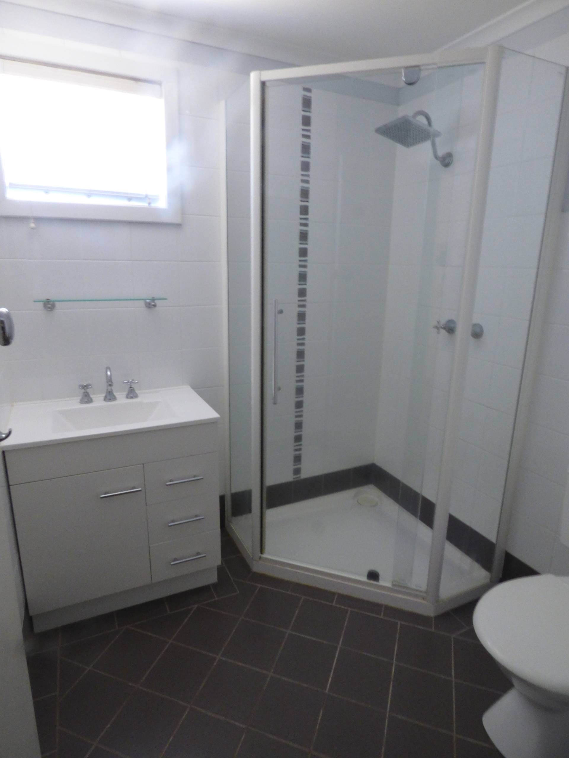 The main bedroom is to the middle of the home and features carpet and a 4 door built in wardrobe. The small walk-way leads directly to your ensuite bathroom. The ensuite has been updated with modern touches and is very functional with a vanity for storage, toilet and corner shower.