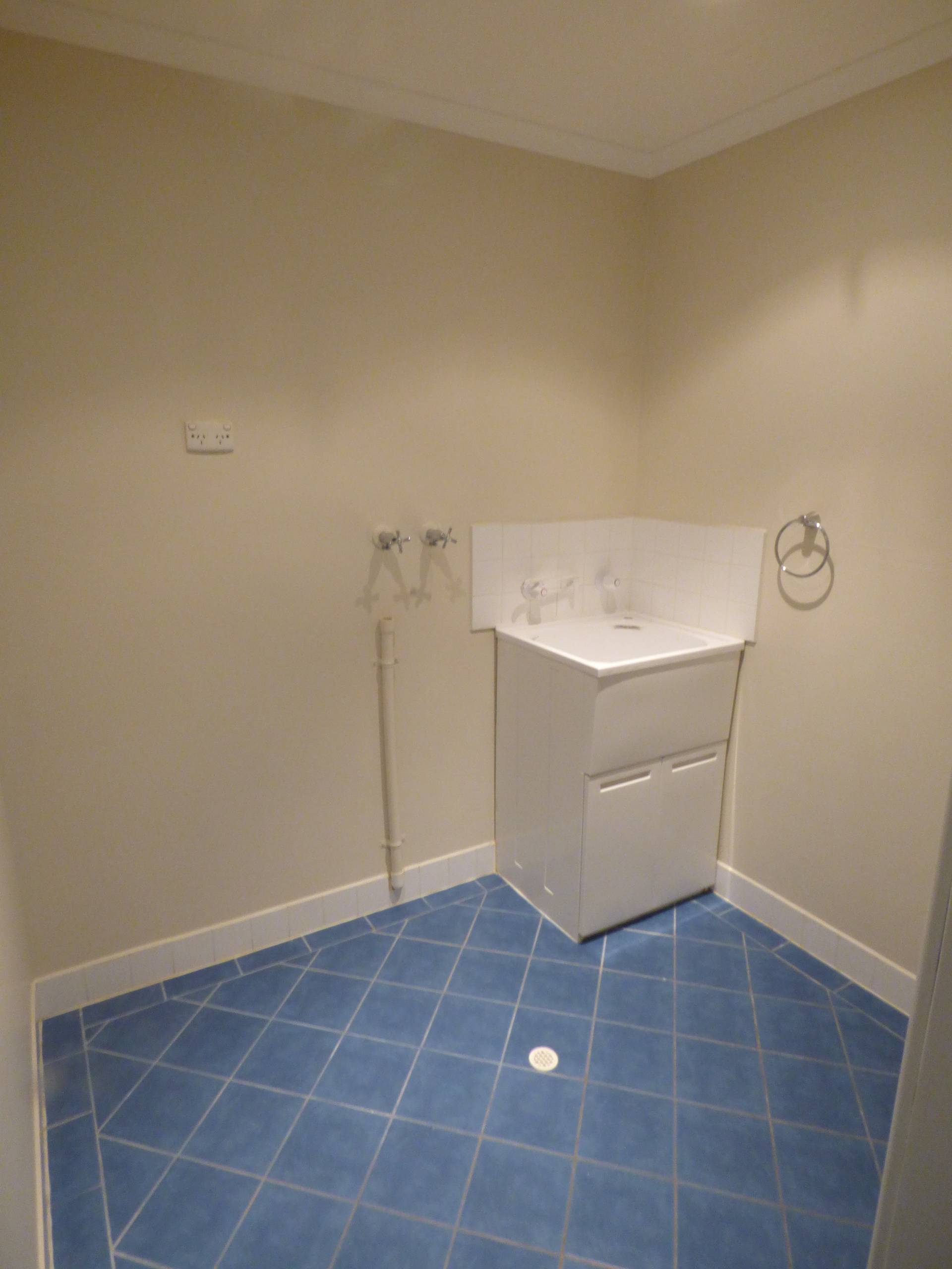 To the rear of the hall, the hallway steps down and you have access into your laundry. This space is tiled and of good size with a trough and plenty of room for your washing machine and additional storage if desired.