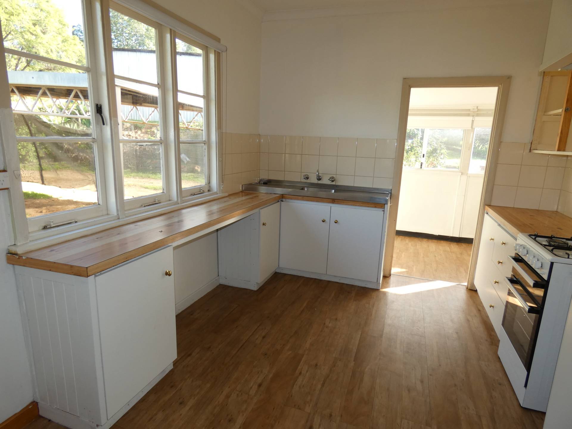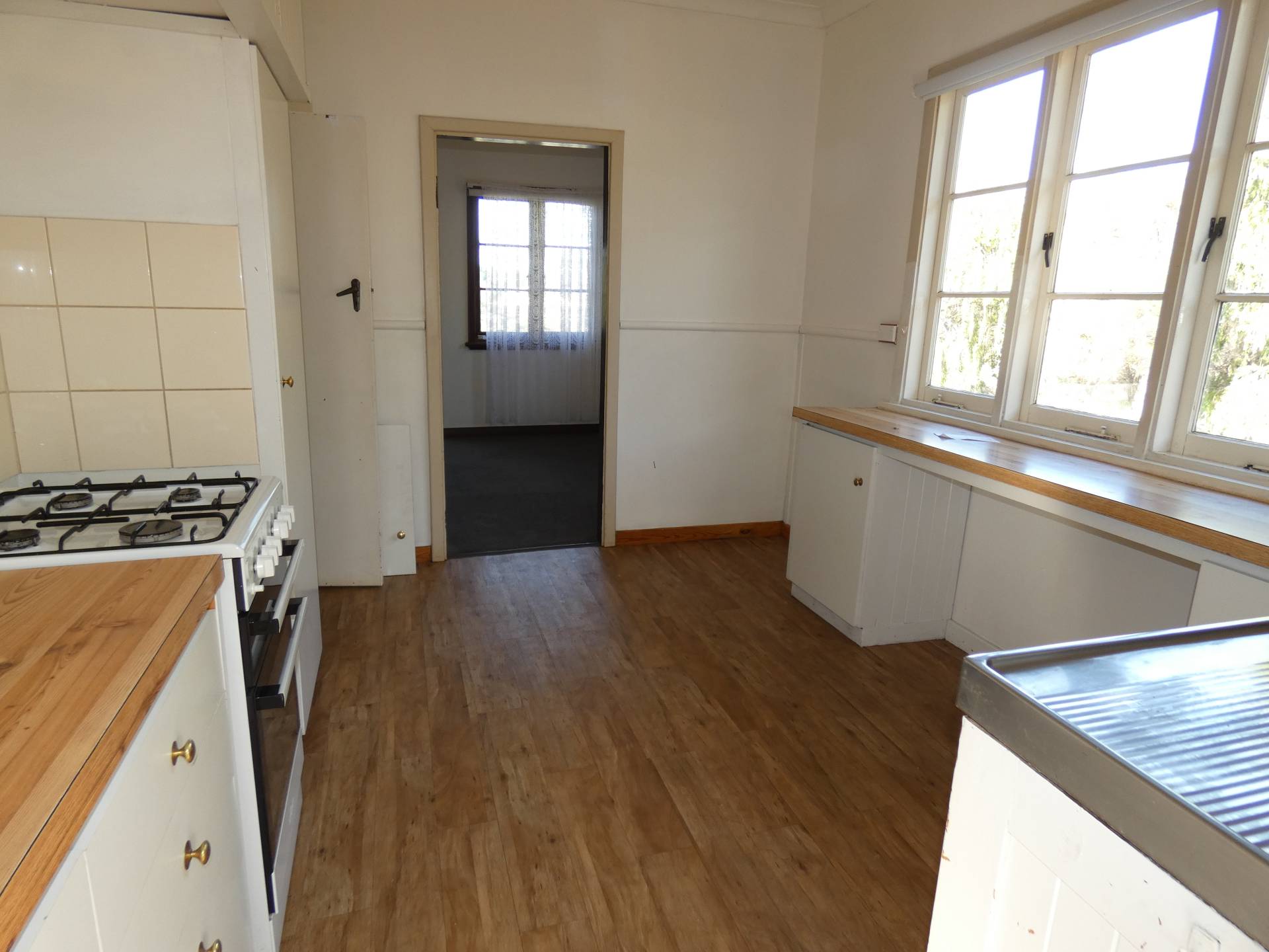 The kitchen consists of timber bench tops and plenty of cupboard space as well as gas cooking.